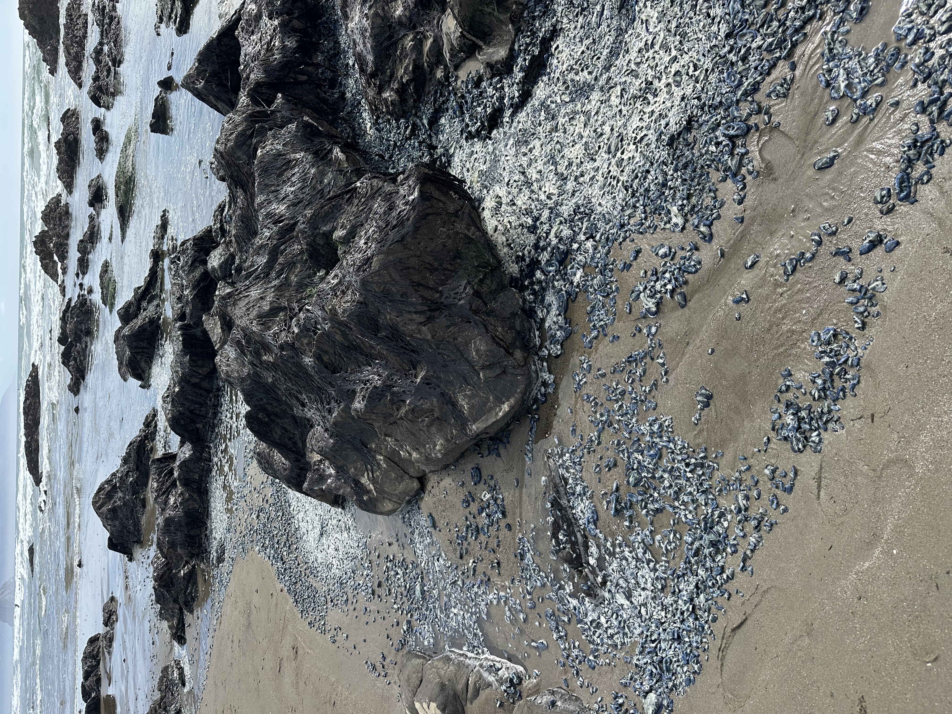 Thousands of by-the-wind sailors showed up on the beach in Cayucos, CA overnight!
