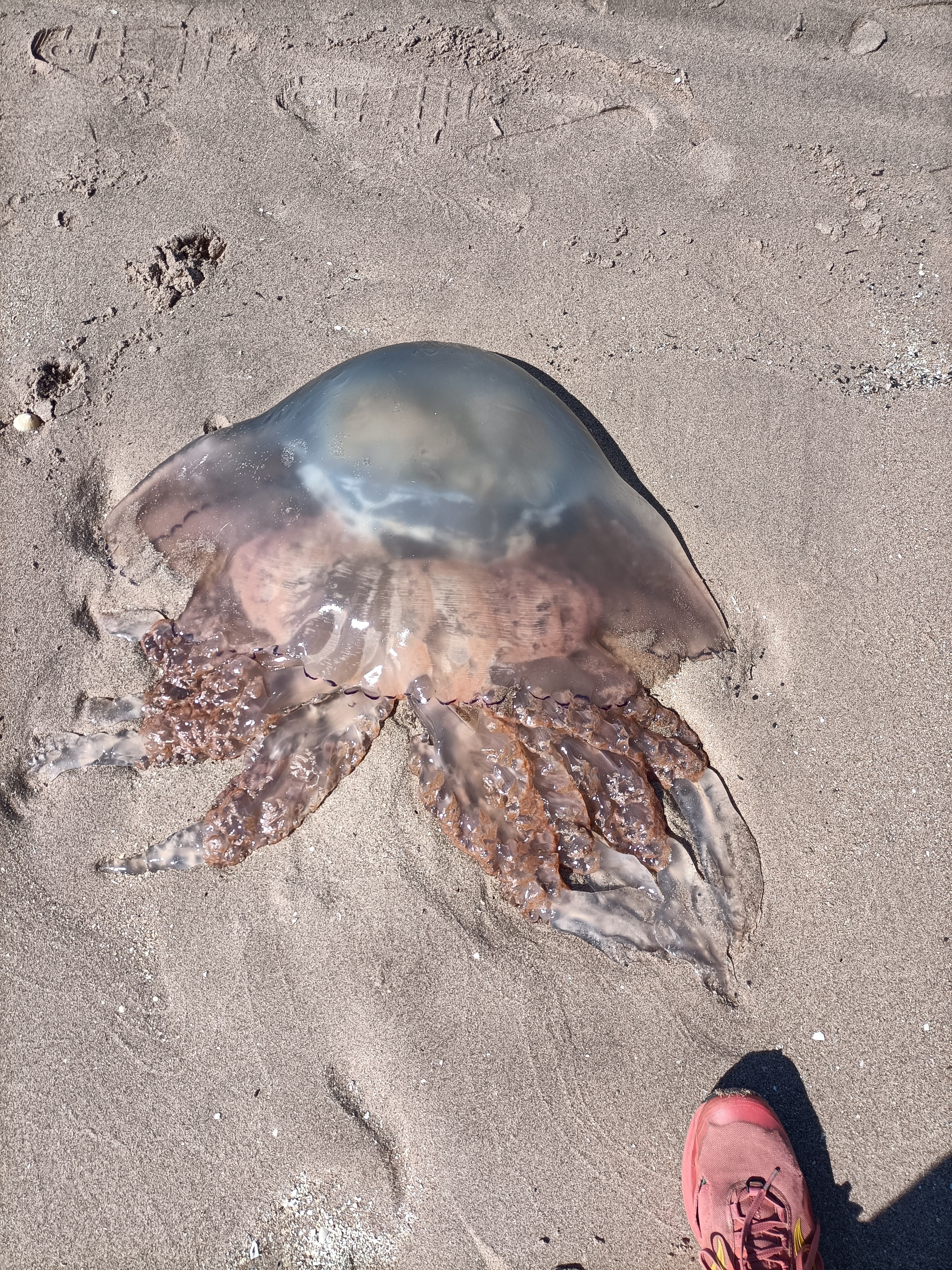 We saw 15 large barrel jelly fish washed up on the beach at Gairloch, Highlands, Scotland