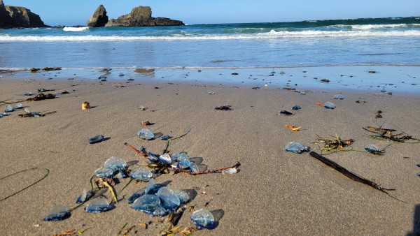 37.540 / -122.520 | Tons of by-the-wind sailors in tide pools and dried out o |