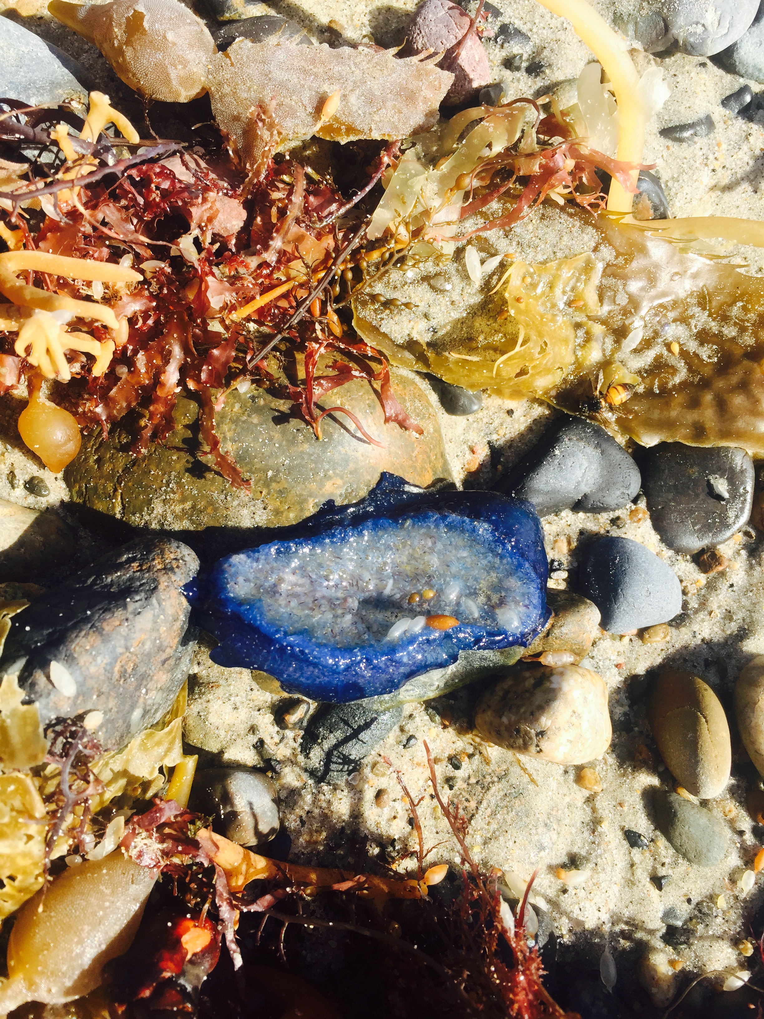 Dead blue jellyfish in Solana beach CA