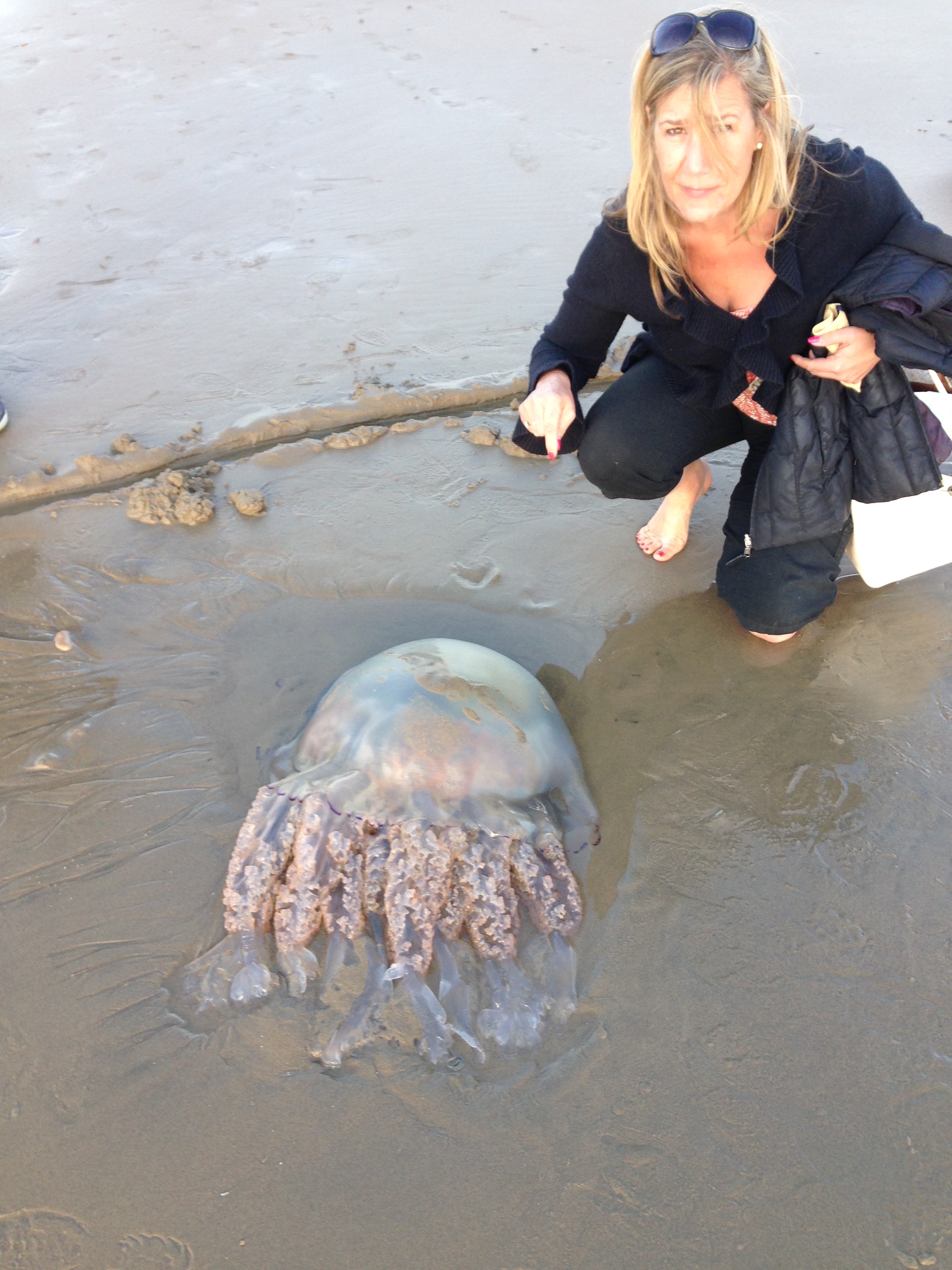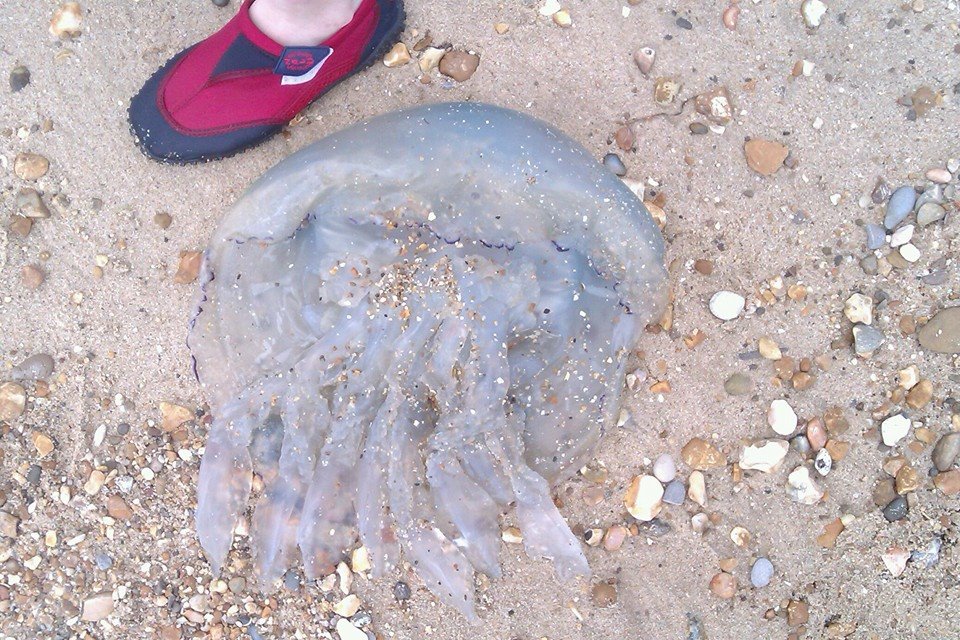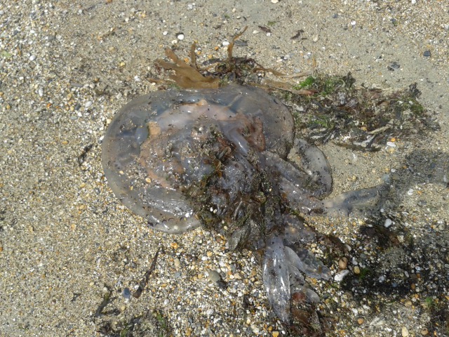 Large amount of Rhizostoma octopus washed up along Penzance beach
