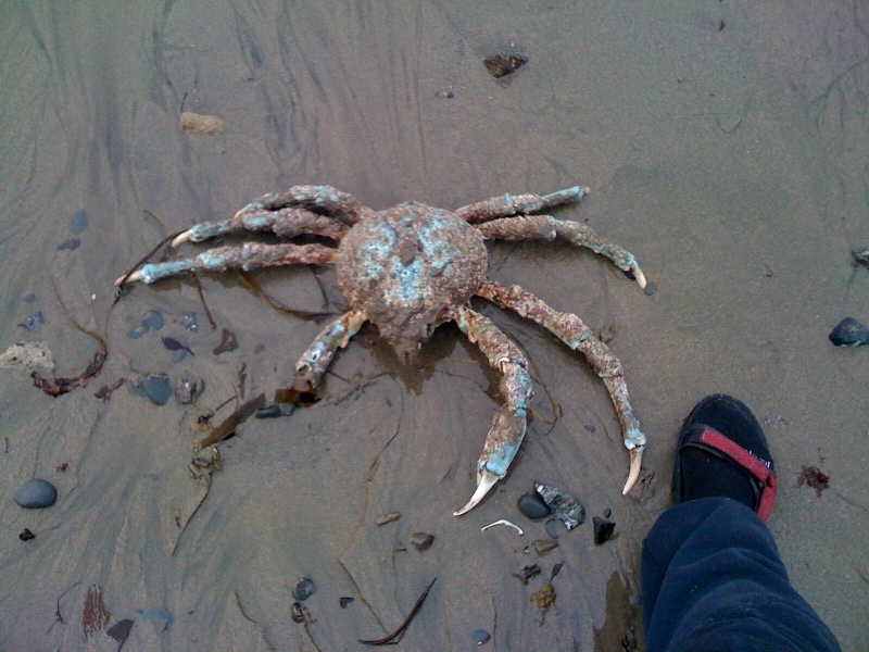 This guy was dead on the beach at New Brighton Beach, Ca. North end, flat rock reef and lots of beach. My shoe size is a 9 womens. So you can see just how big this Crab is/was. I was told it was a "Spider" Crab. Is this true?