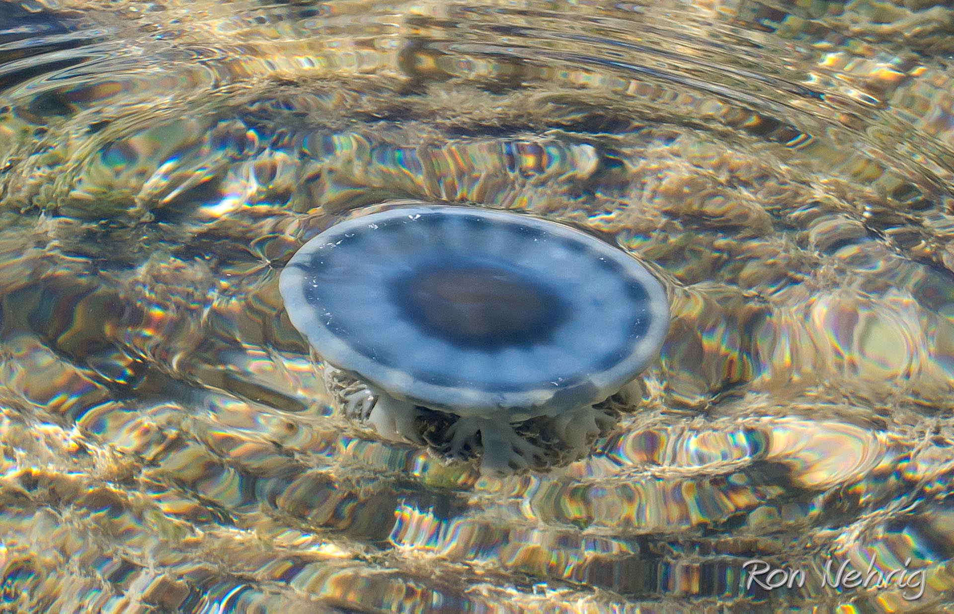 Aprox 4" across, drifting across the shallow flats on the northwest side of Cudjoe Key, FL, 9-12" of water near low tide.