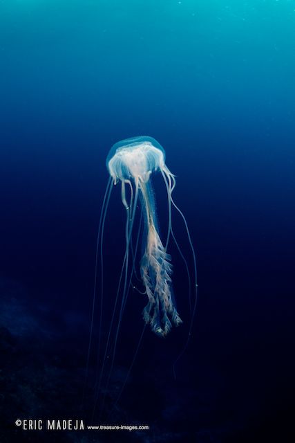 Hi Eric, great find, this appears to be a species of Chrysaora. It could be C. chinensis but I have not heard of it being reported that far west in New Guinea. It could also be Sanderia malayensis if it has 16 of the little 'dots' (rhopalia) around the bell margin... but I only see 8 in this photo. Do you have more photos?