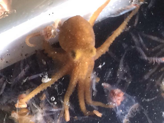 Octopus rubescens - Red Octopus collected on our 115m trawl - aboard the John Martin Research Vessel Moss Landing @mbari_news #EARTH2014 RELEASED Photo credit Megan Jones