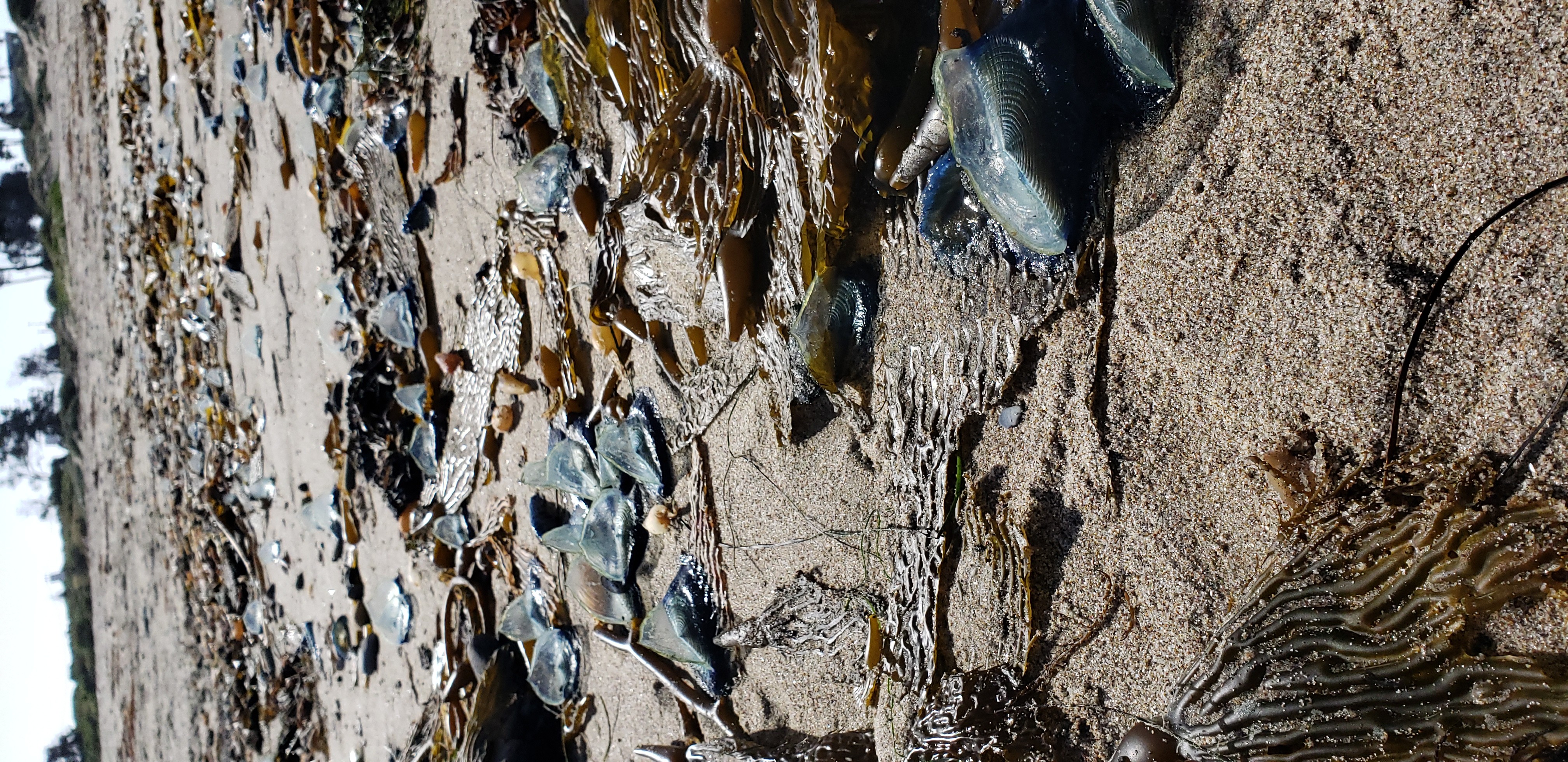 Hundreds of Velella have washed up onto the beaches best Coal Oil Point