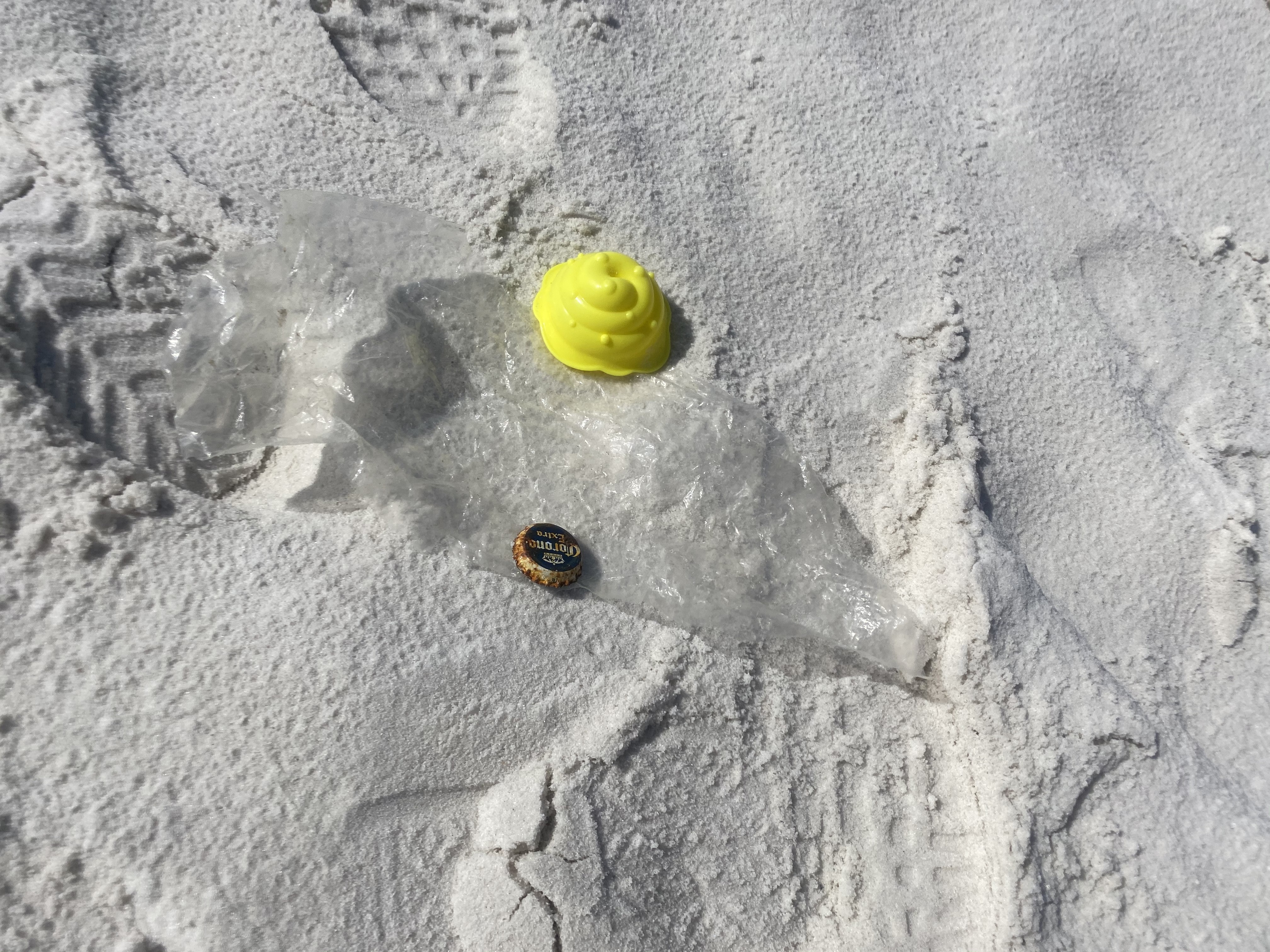 We found 3 pieces of plastic from walking a mile down the beach and back