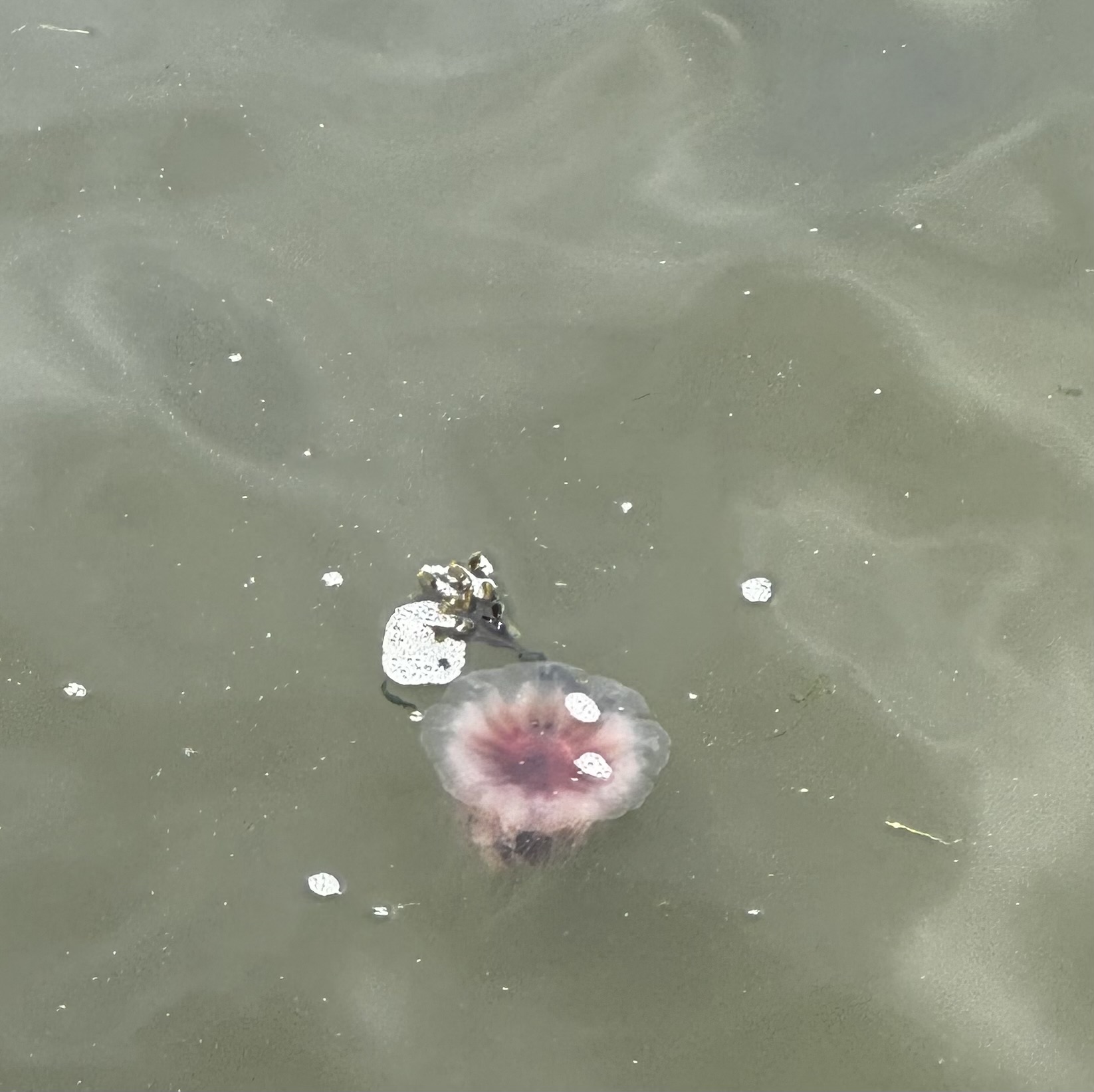 Dozens of what appear to be Lions mane Jellyfish in the Bay side of Rockaway Beach near Beach 116th Street at the Wharf Restaurant and all along the Ferry stop.
