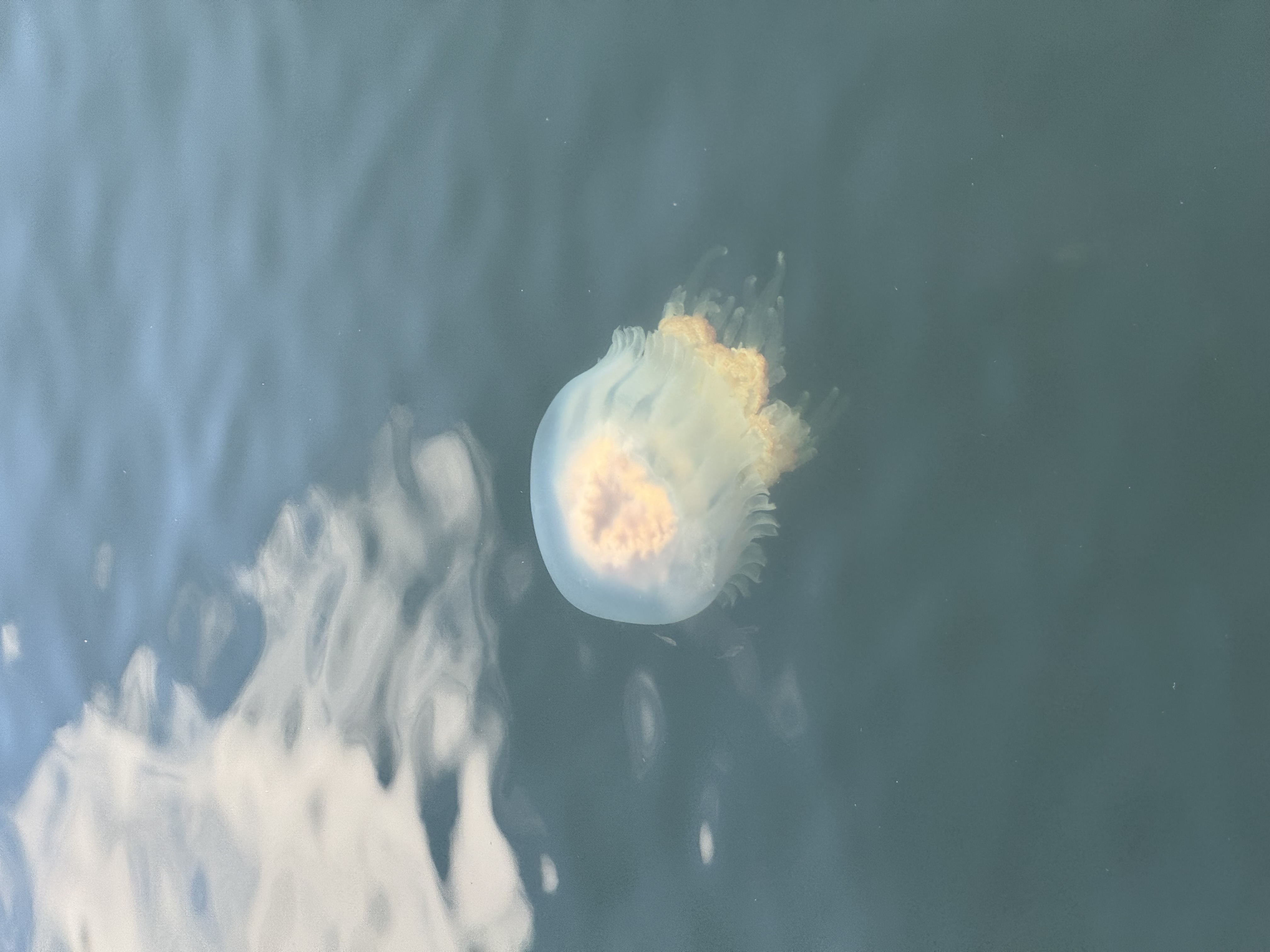 Barrel Jellyfish spotted in Bayboro Harbor, St. Pete Florida. Had several small fish around its bell.