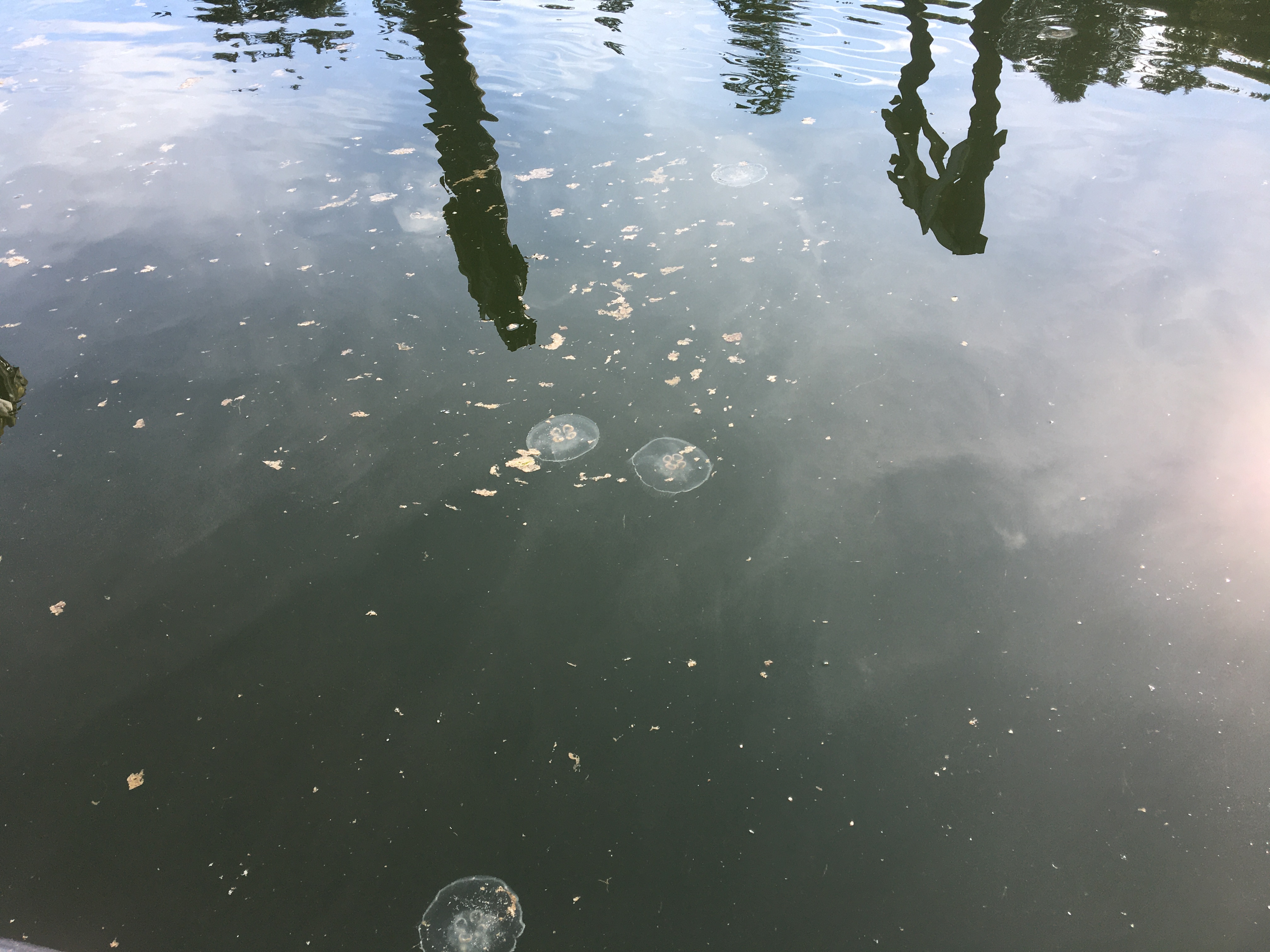 Blue lions mane jellyfish Cyanea lamarckii are starting t