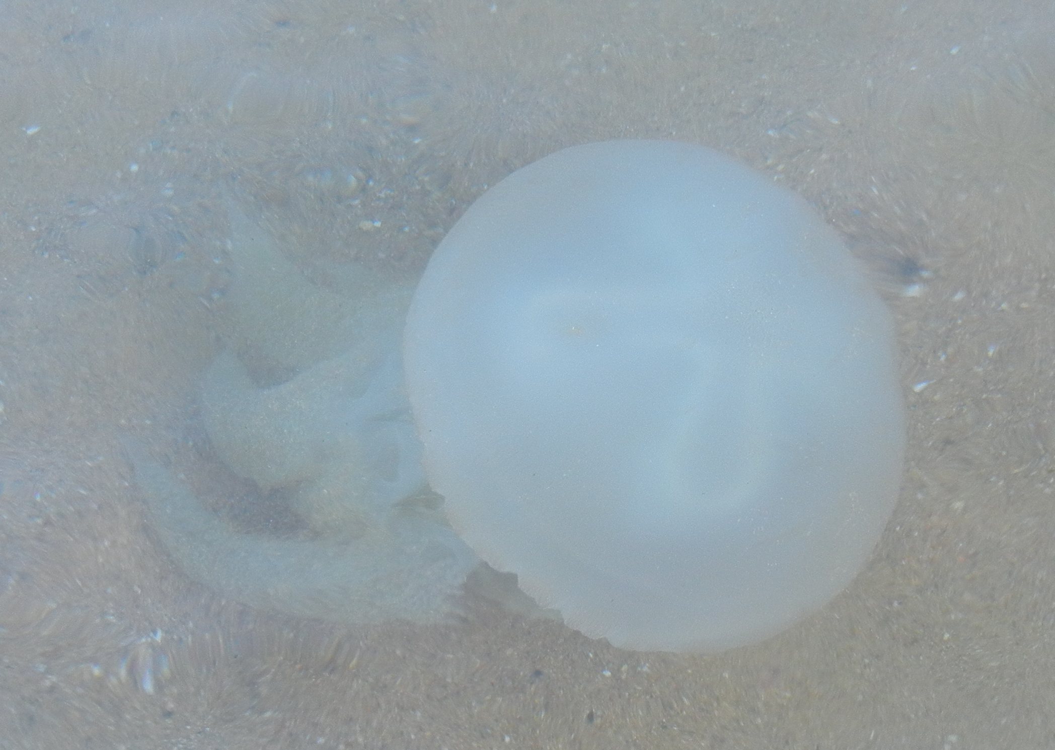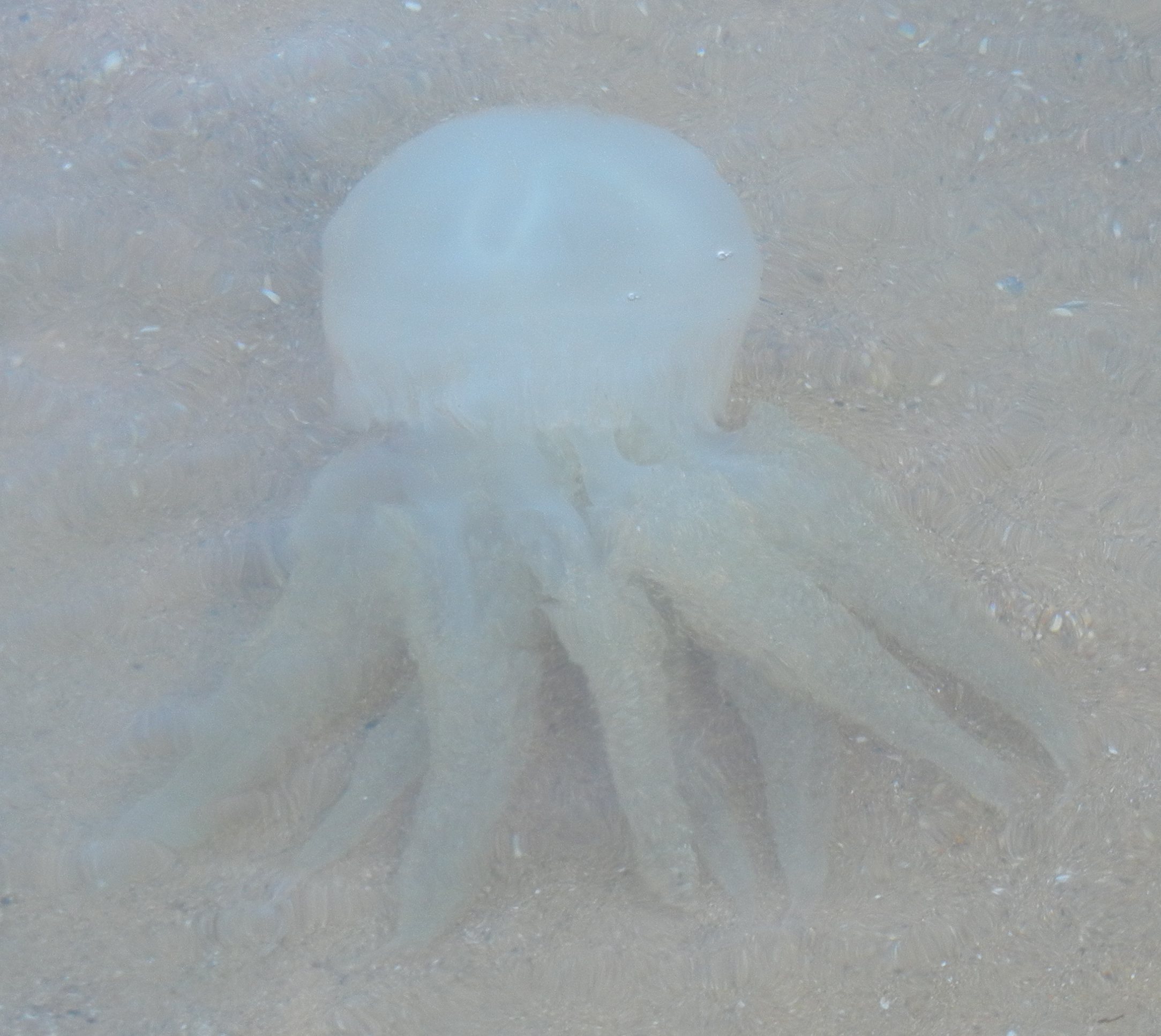 1 or 2 Jellyfish swimming in shallow water (following nea