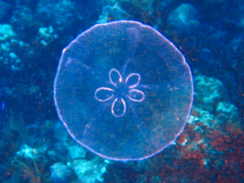 A few moon jellies were washed up against Peanut Island&#