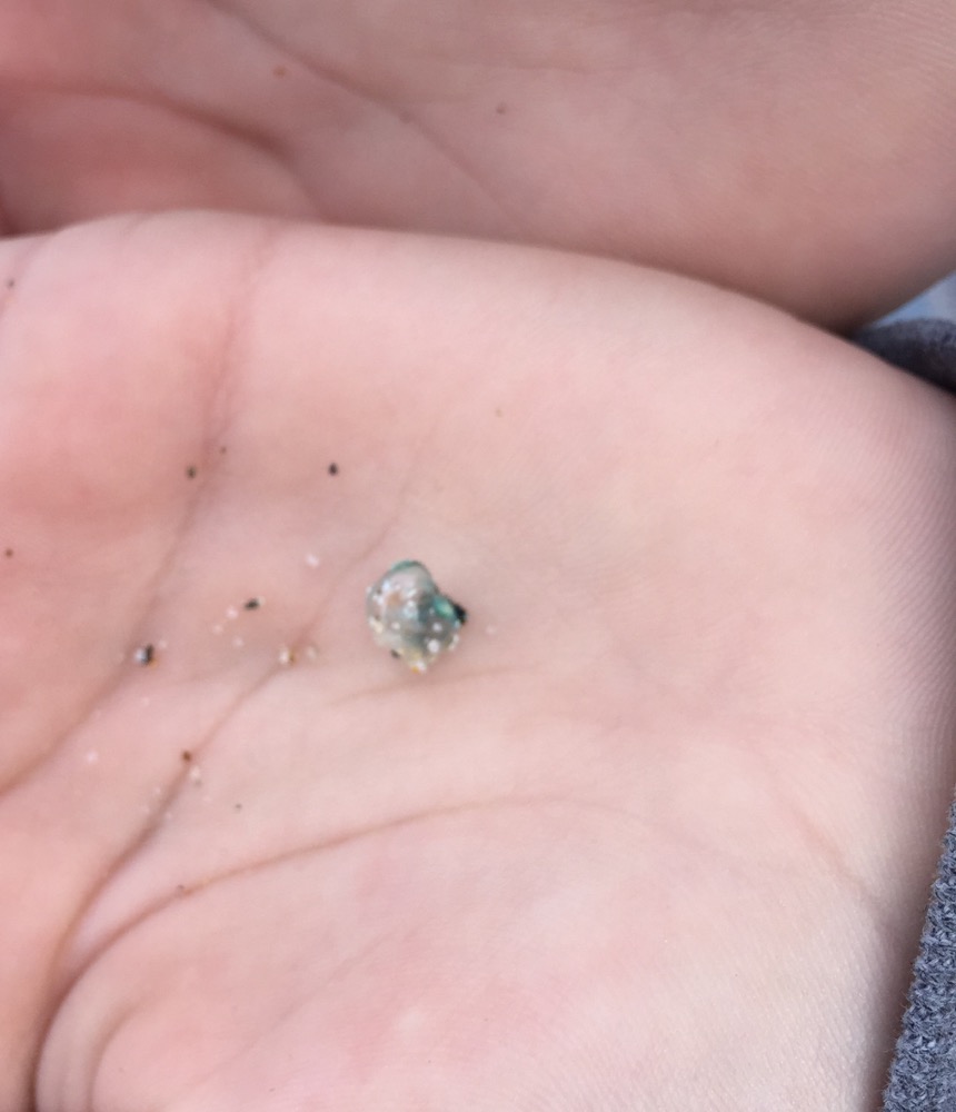 I was walking in the beach and saw this very small blue t
