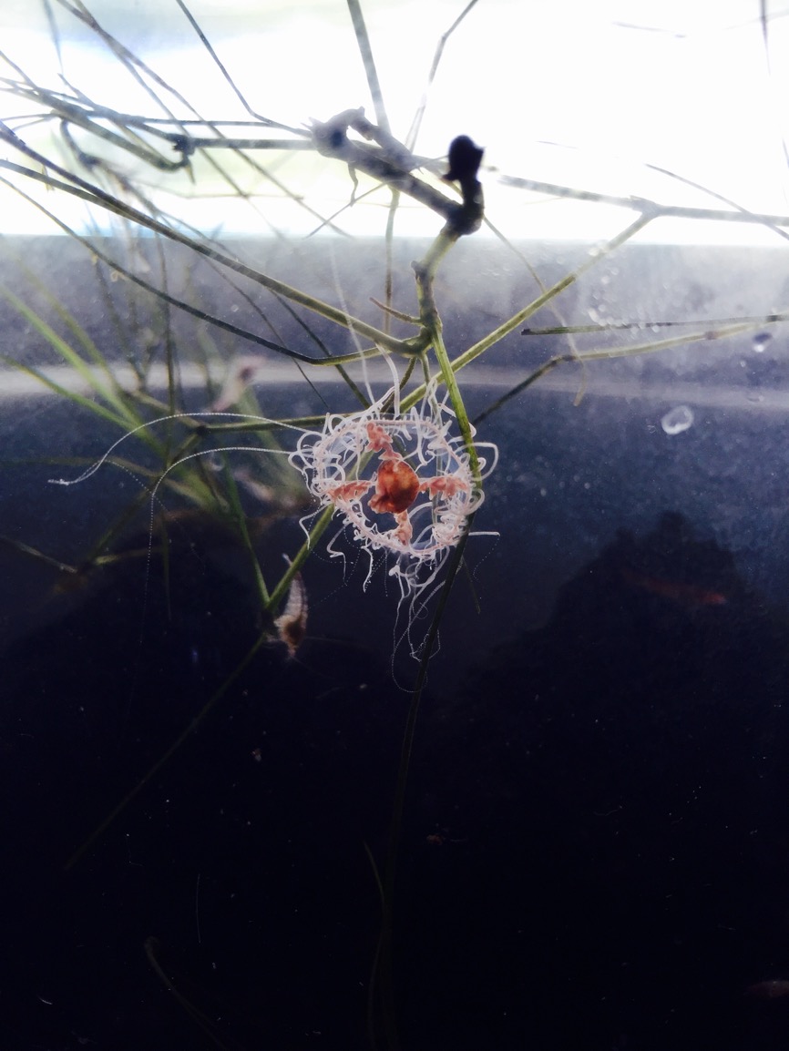 This jelly emerged from an anchialine pond in kaupulehu,