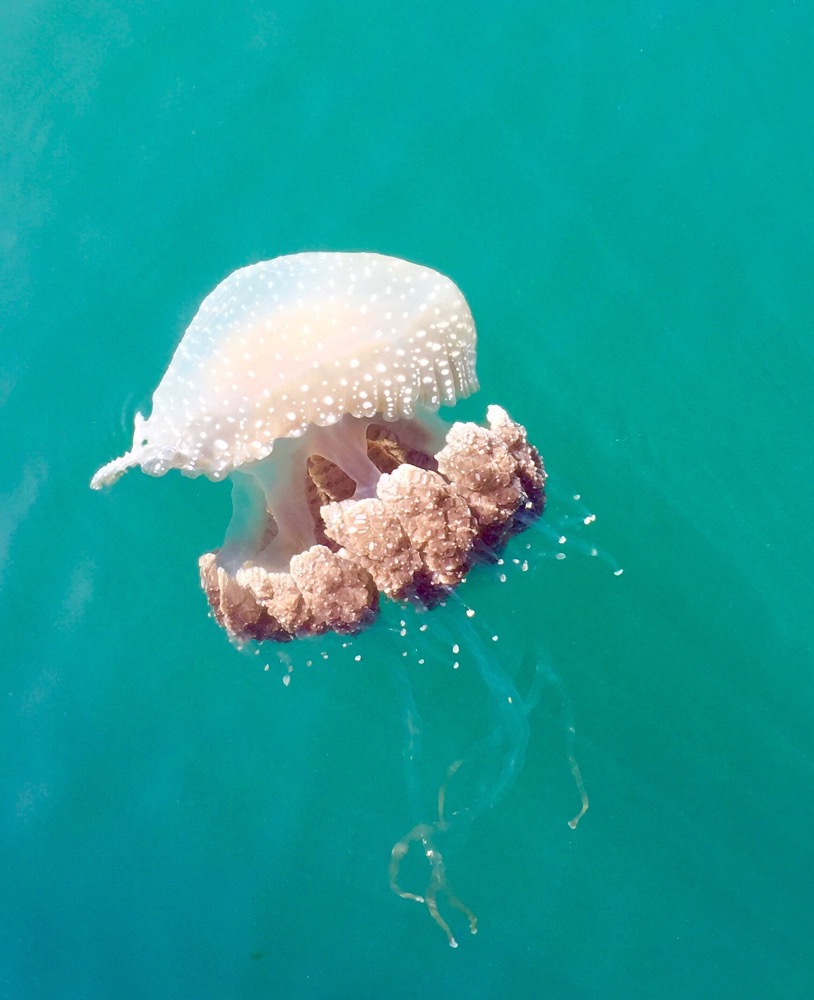 Rare Australian Spotted Jellyfish swimming in front of Co