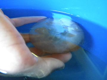 Found an injured cannonball jellyfish while searching for wild jellies. Took it in for research and healing. Male specimen.