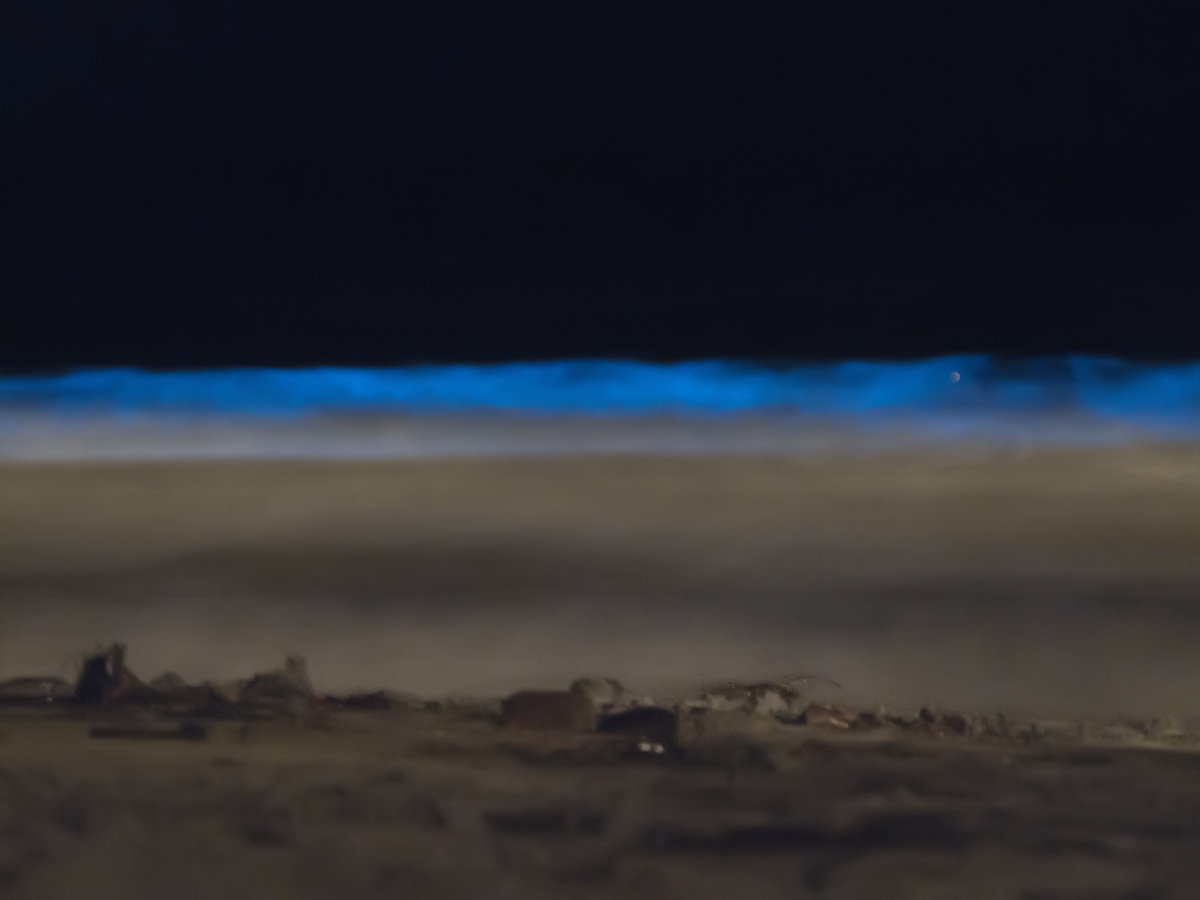 The waves were aglow due to red tide at Torrey Pines State Beach near Del Mar, CA. It was an amazing light show with almost every set of waves. The photo is a 15-second exposure with the camera resting in the sand.