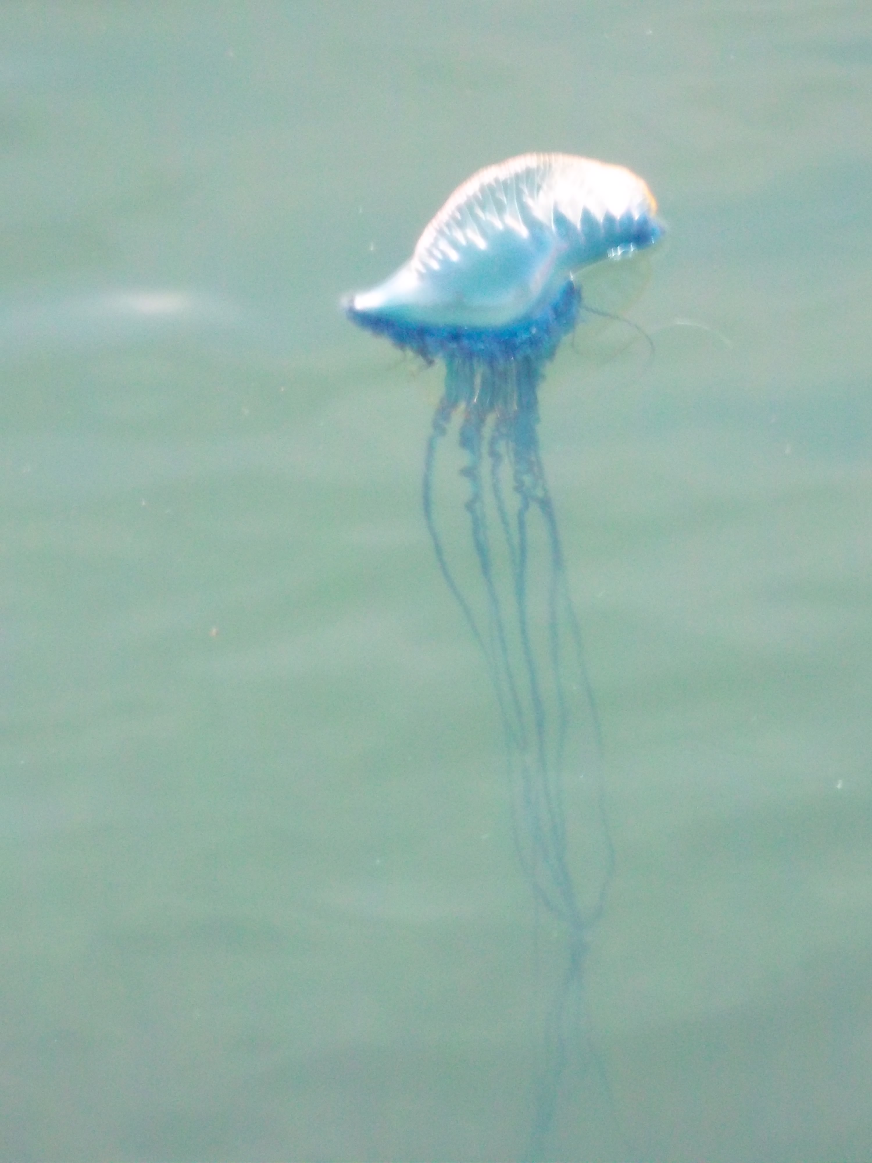 There have been Portugese Man of War washing up on the beaches of Port Aransas for at least the last a month.This photo was taken in the University of Texas Marine Science Institute boat basin on the first day I noticed the wave of man of war on 2/6/12, they were still washing up yesterday 3/22/12.