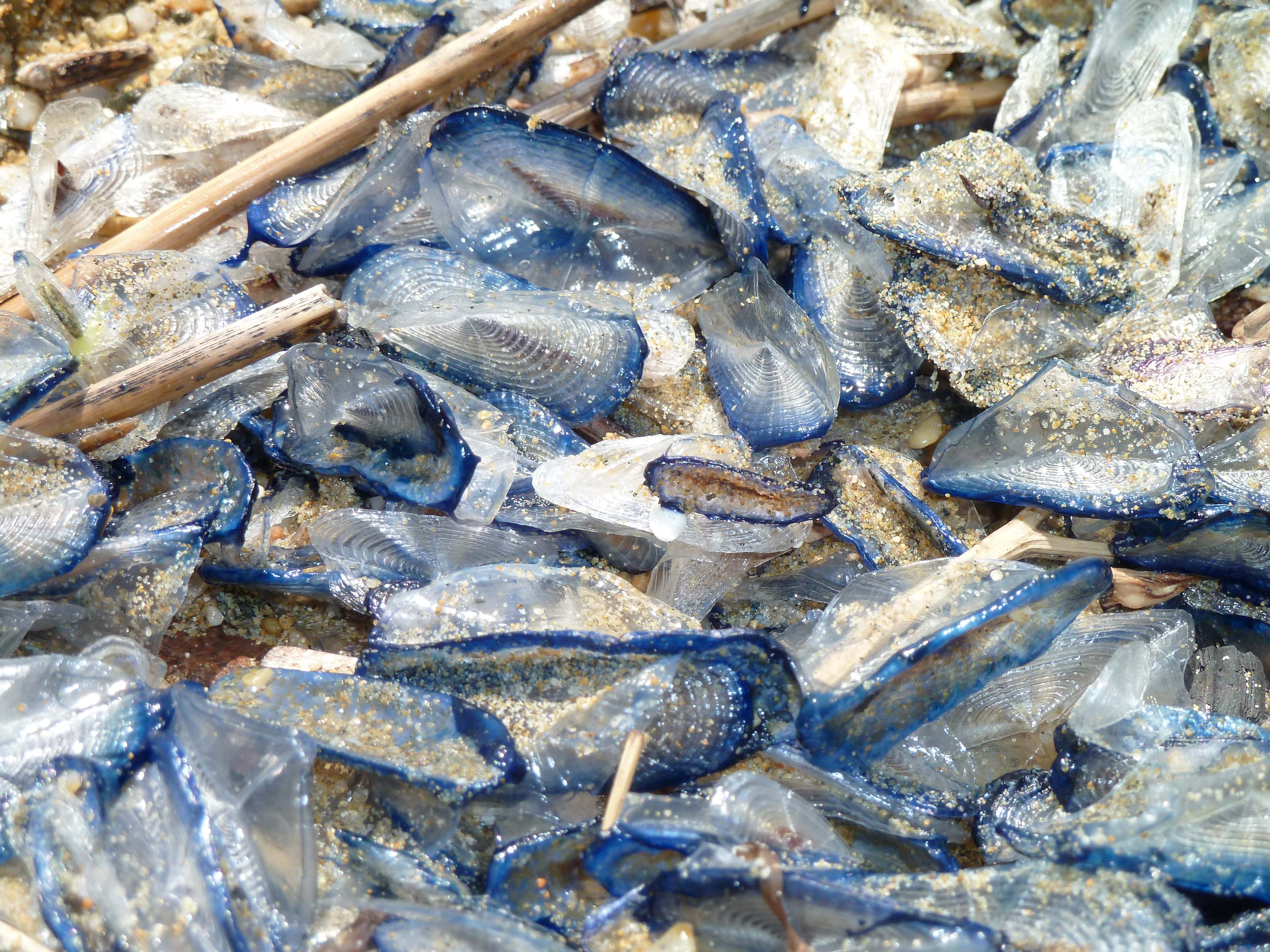 for the past couple of days, and actually the past week or two also, a huge bloom of these jellyfish have washed ashore. numbers washed ashore must surpass in the tens of thousands, because the shore that is about 300 m long has a meter wide strip of them lining the shore. same with last week, but they were already a few days old by then. they range from small to about 12 cm (3-4 inches). along with the jellyfish there are also strings of little translucent animals, roughly egg shaped, which i must assume are related somehow. they are much smaller, only up to about 1-2 CM (about .5 inches)