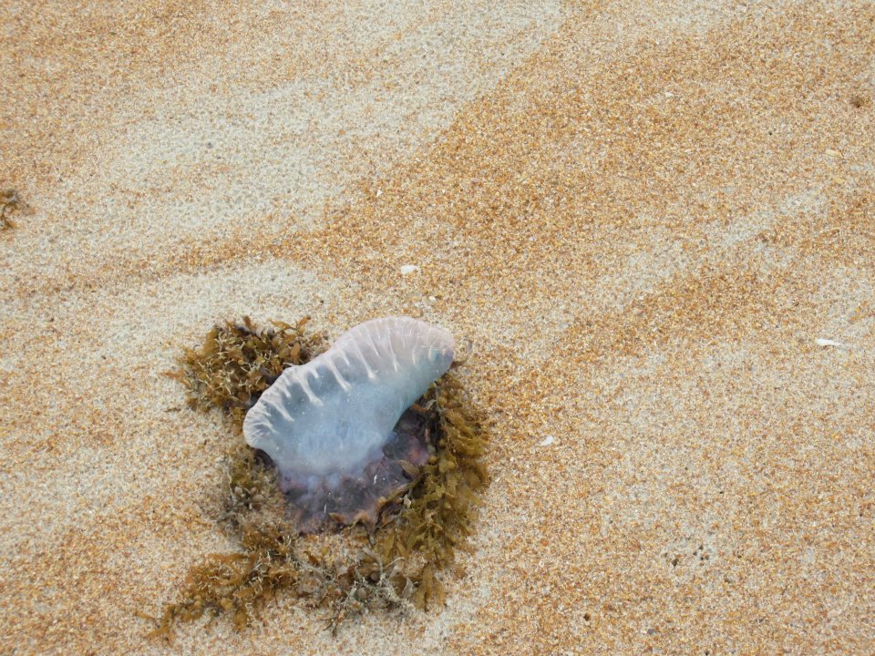 was walking down the beach and saw this guy. must of washed up after the strong winds we were getting the night before