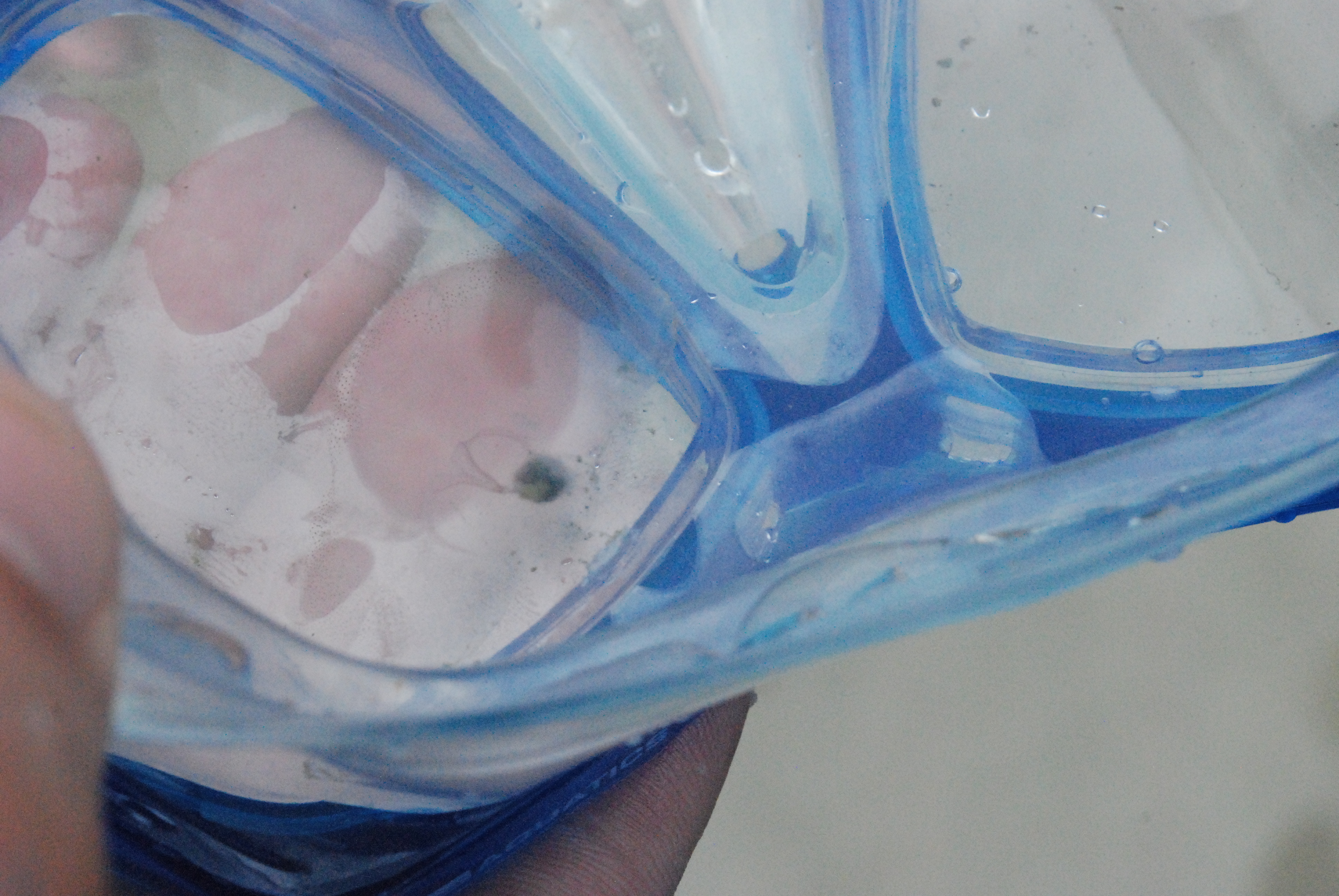 There were hundreds of these swimming in the low tide surf off Canaveral National Seashore just south of New Smyrna Beach. I have no idea what they were but they swam with sea-ray like wings. We caught one in a facemask to look at it.