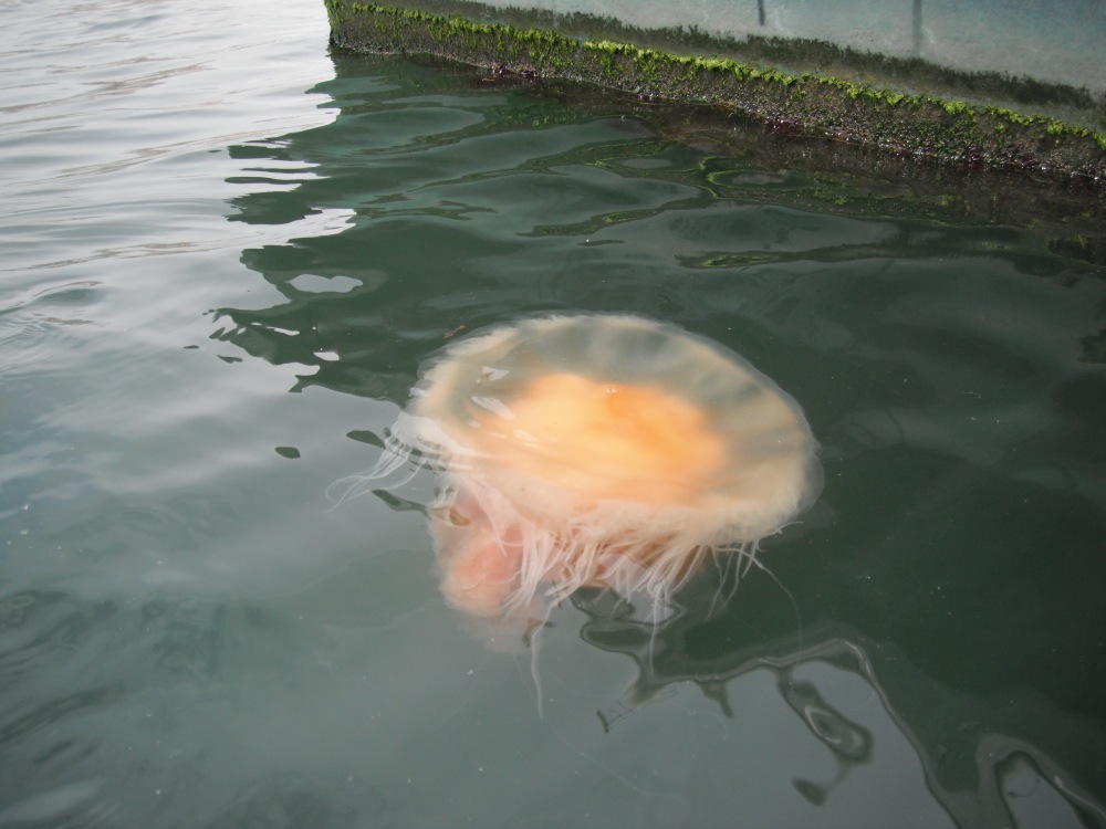 Thanks for the report. That is actually an egg-yolk jellyfish, Phacellophora. They eat other jellies!
