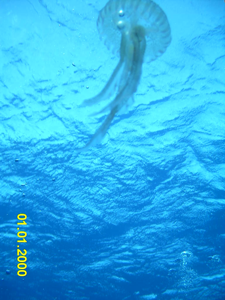 Small bell, dark tentacles, dark purple colour, moved quite fast and with intention.