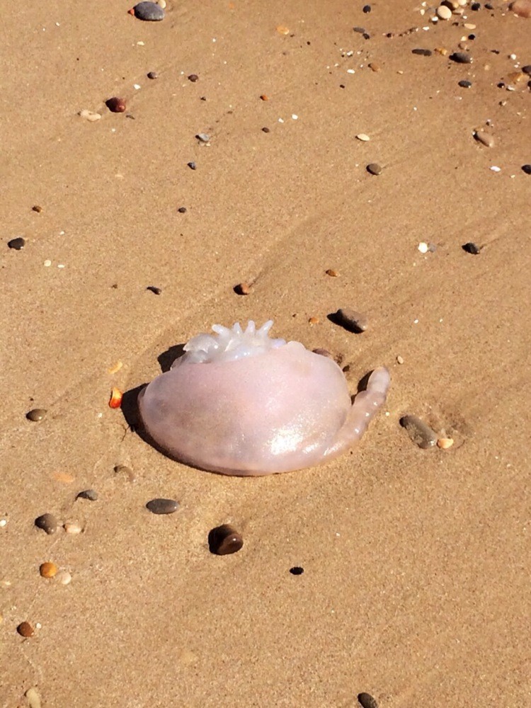 Multiple stranded individuals, combined bloom of Pelagia and Rhizostoma.