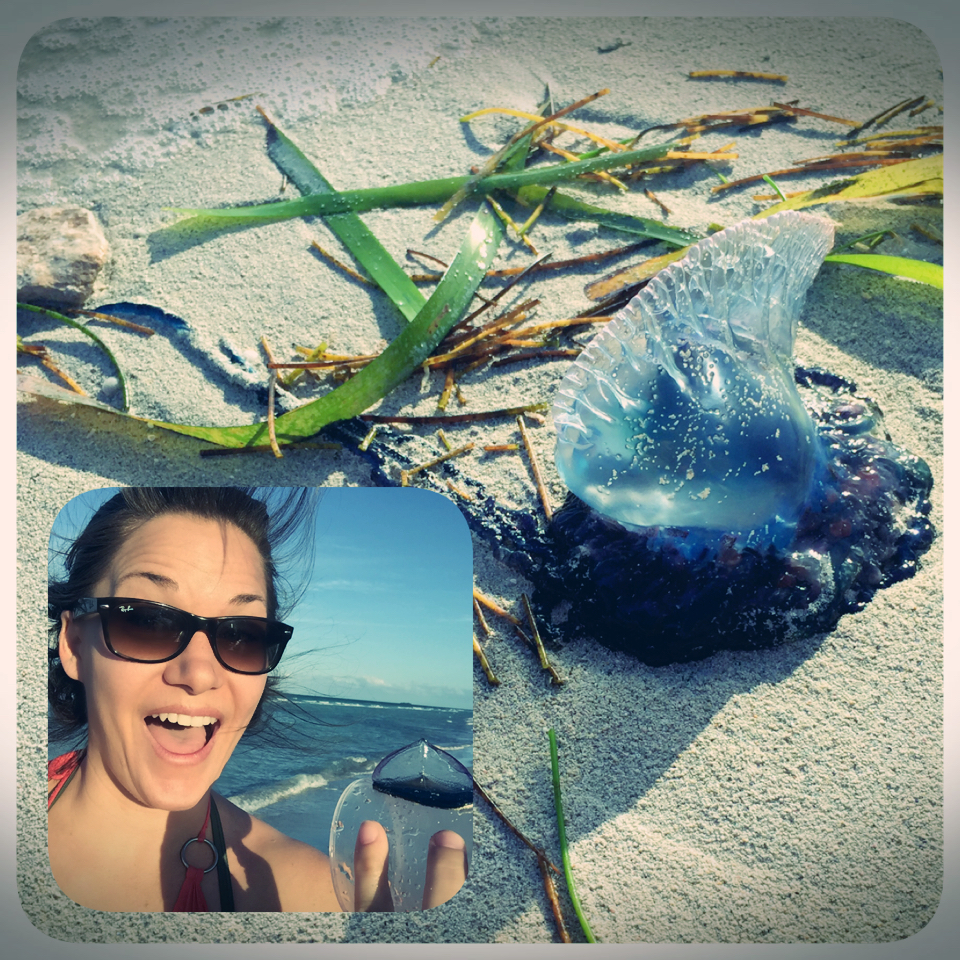 On the shores of Varadero in Cuba dozens of Velella Velellas washed onto the beaches along side large Man o Wars. A beautiful sea of blue on the shores