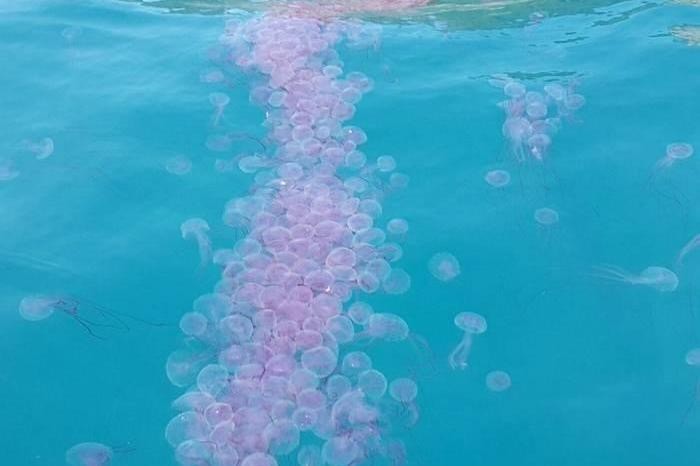 Blooms of pink jellyfish Thailand