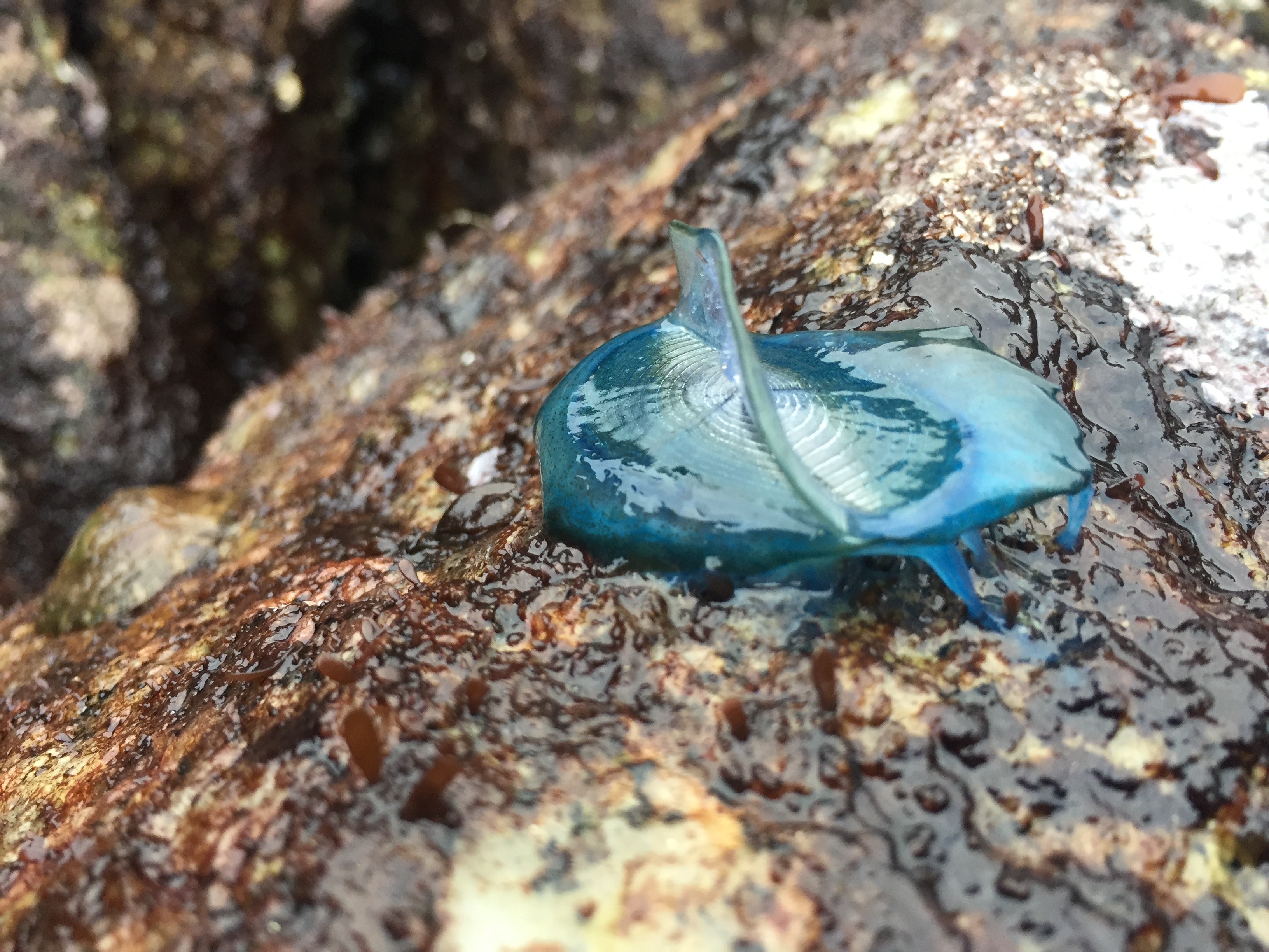 Lefty. Tide polling a negative tide and saw this lone velella halfway out between shore and sea. Saw no others the whole hour or so out there.