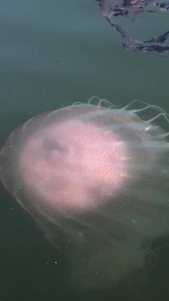 We were kayaking in Centerport Harbor, on Long Island, and we came across a large pink and white jellyfish that I now believe was a Lion's Maine (Mane?) I have a video and picture of it. IT seemed unusual for it to be in that location and the water was cold.