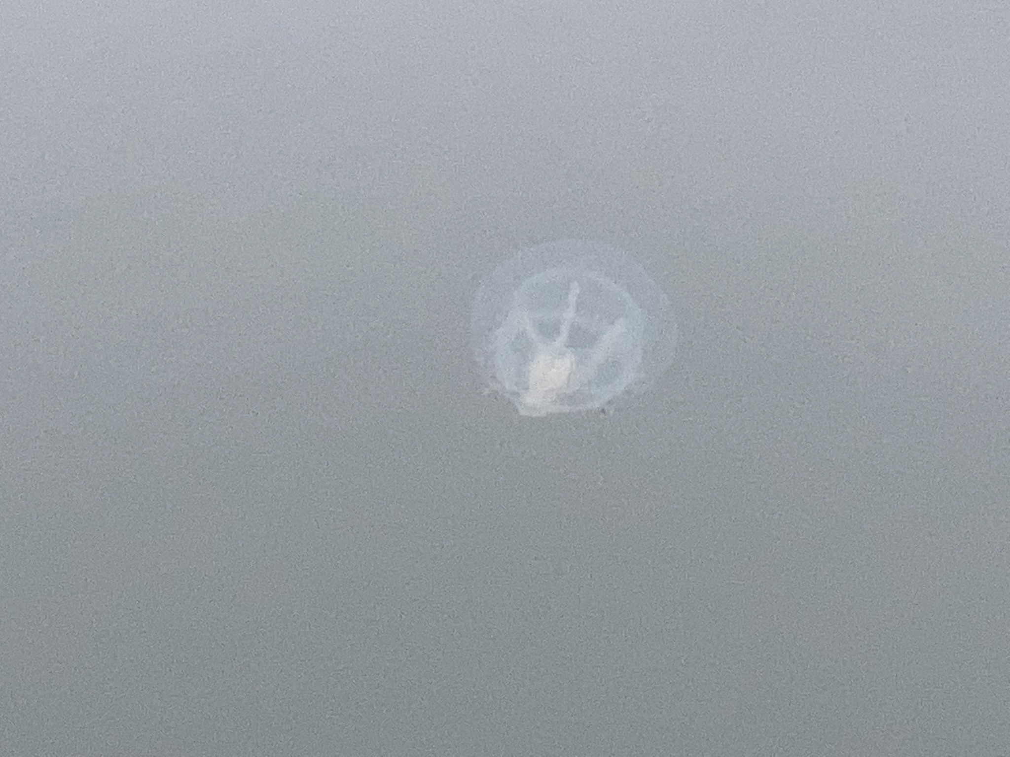 A scattering of small bell jellies in the harbor on a falling tide today.