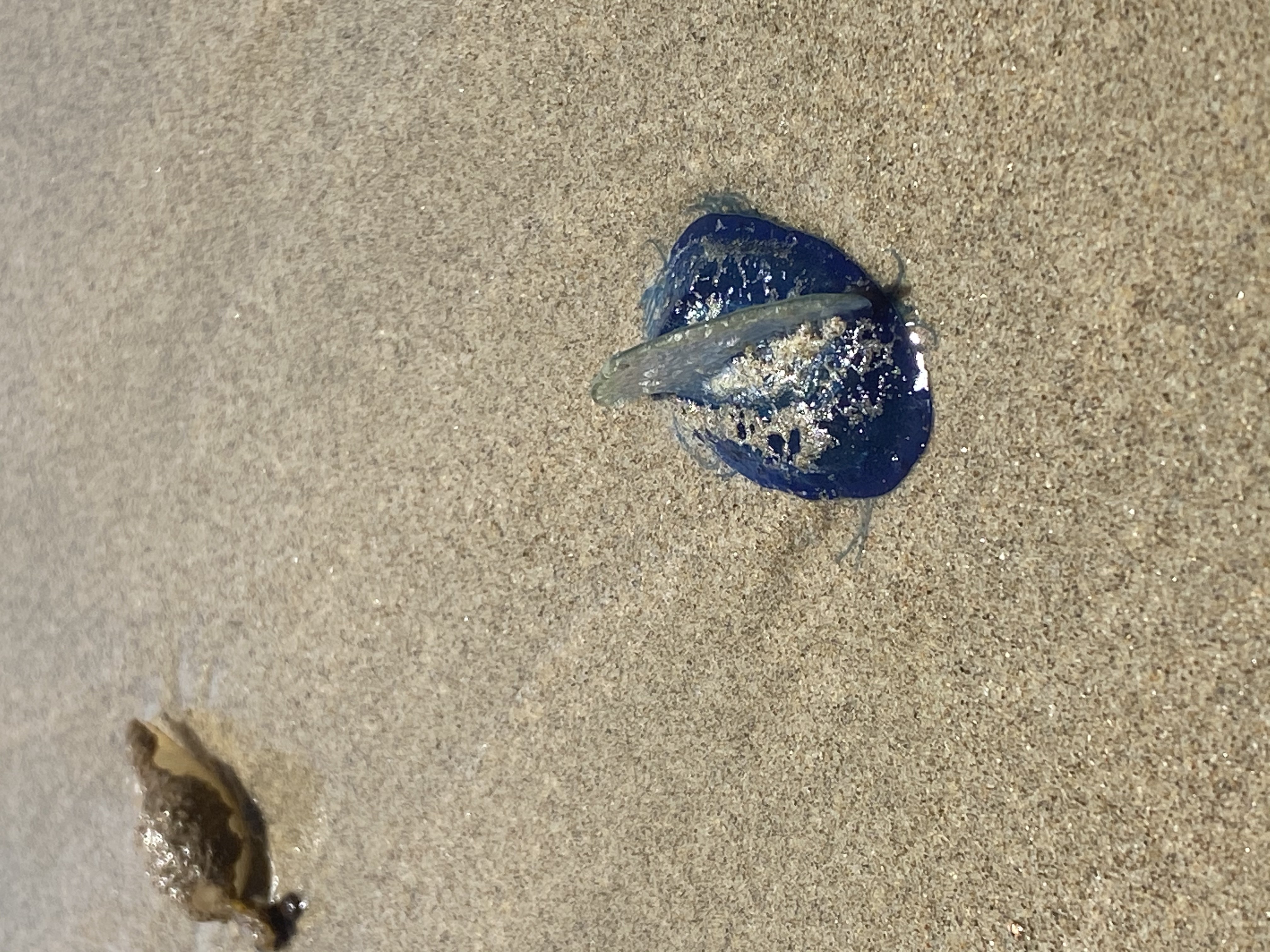 7-10 healthy Velellas were washed up on the beach in Montecito CA along the sides of giant kelp.