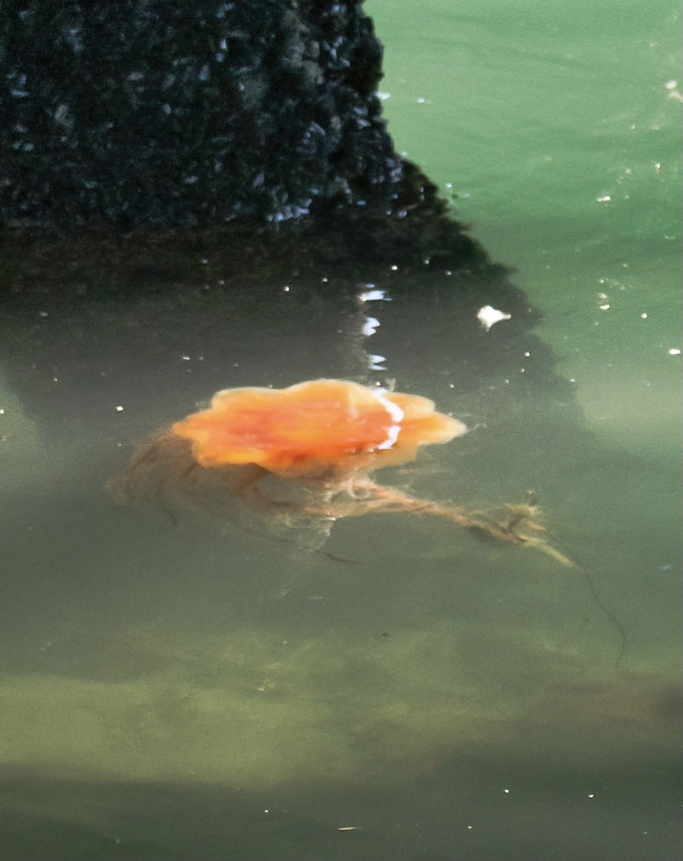 saw these jellyfish close to shore at low tide. both measured approx 6-7 inches in diameter.