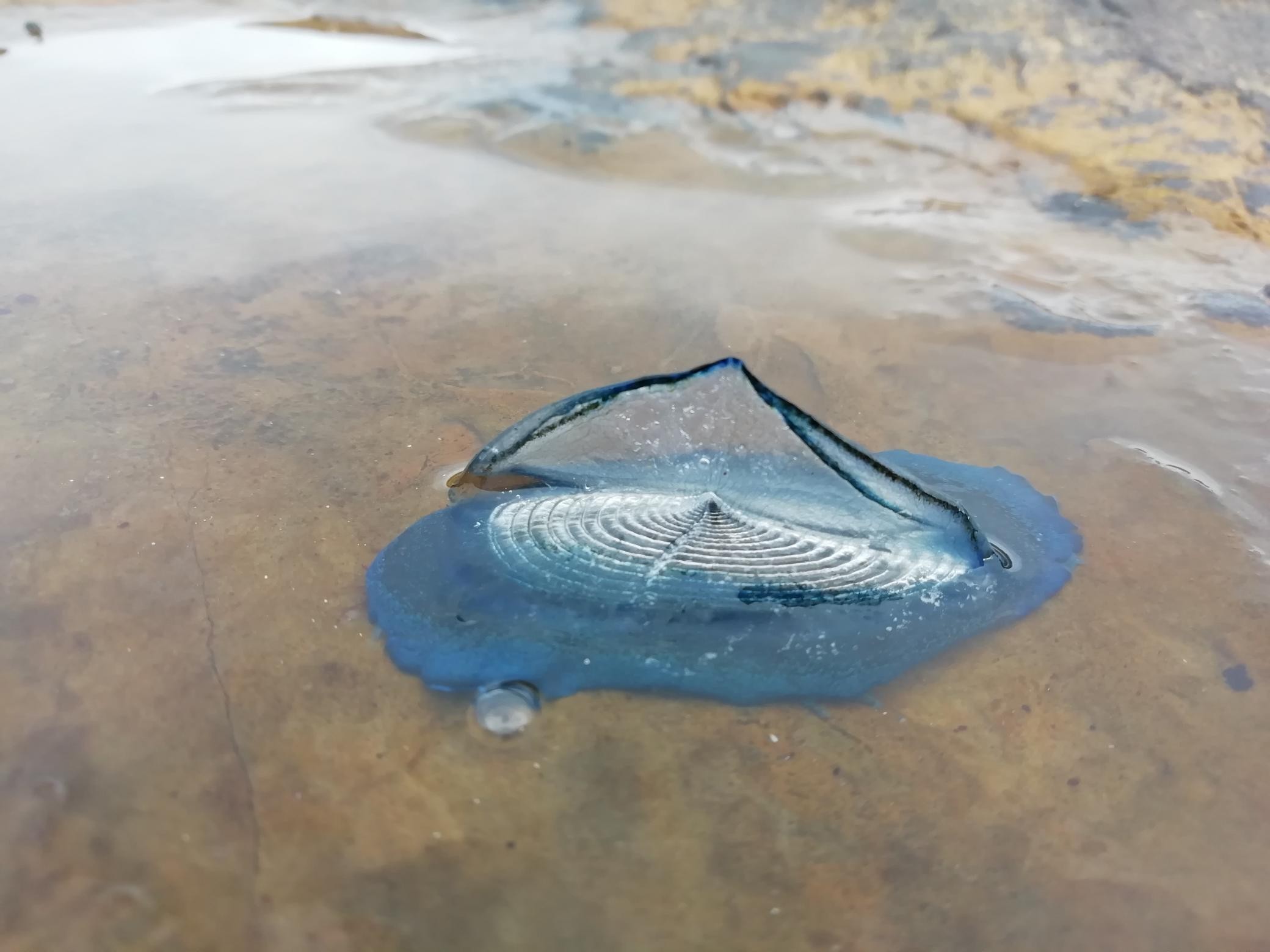 Good condition but blown ashore - onshore SW wind. Mixed rockpool sandy shore.