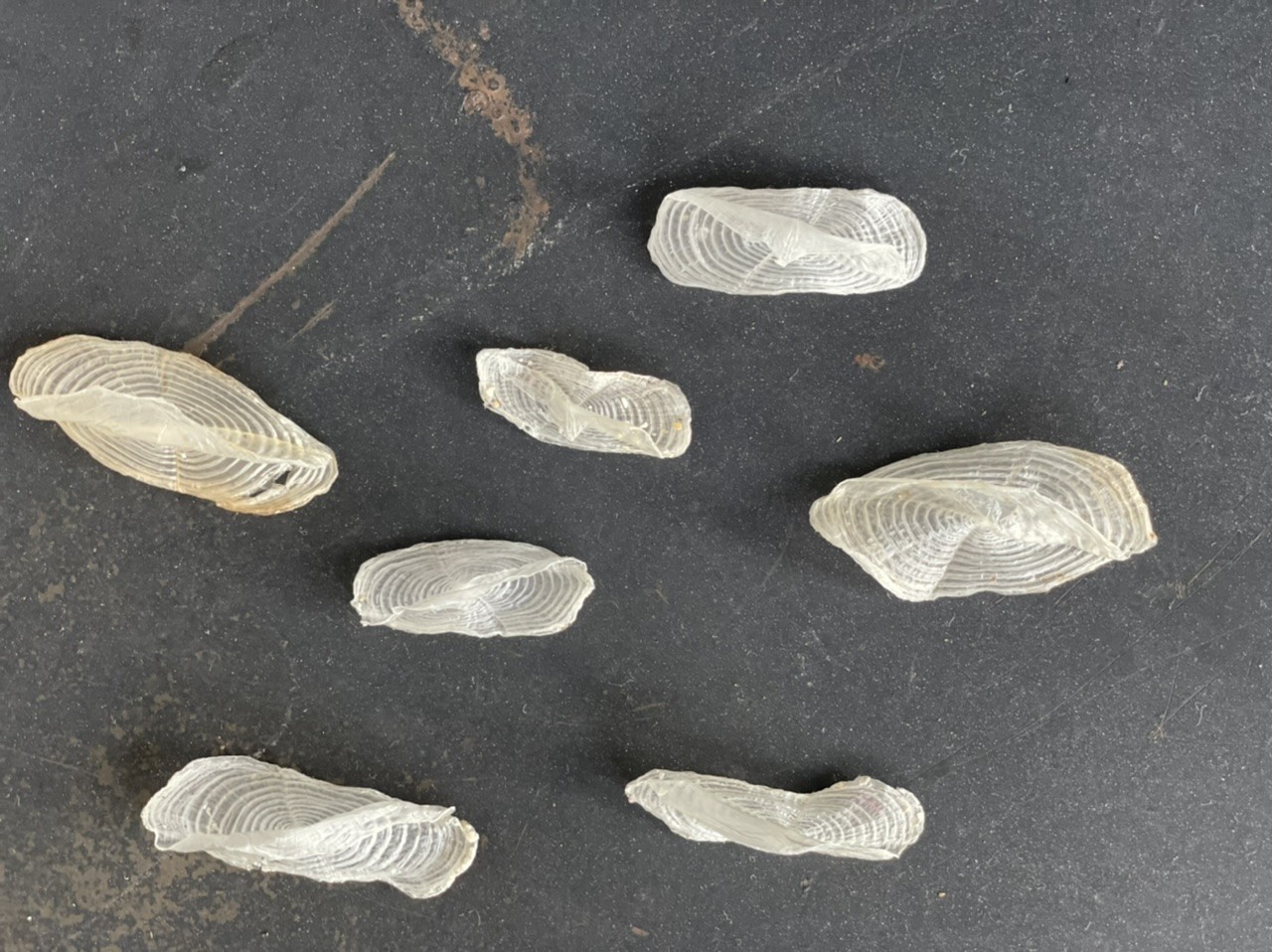 Sail plates found on the strandline. Mostly right handed but at least one left handed
