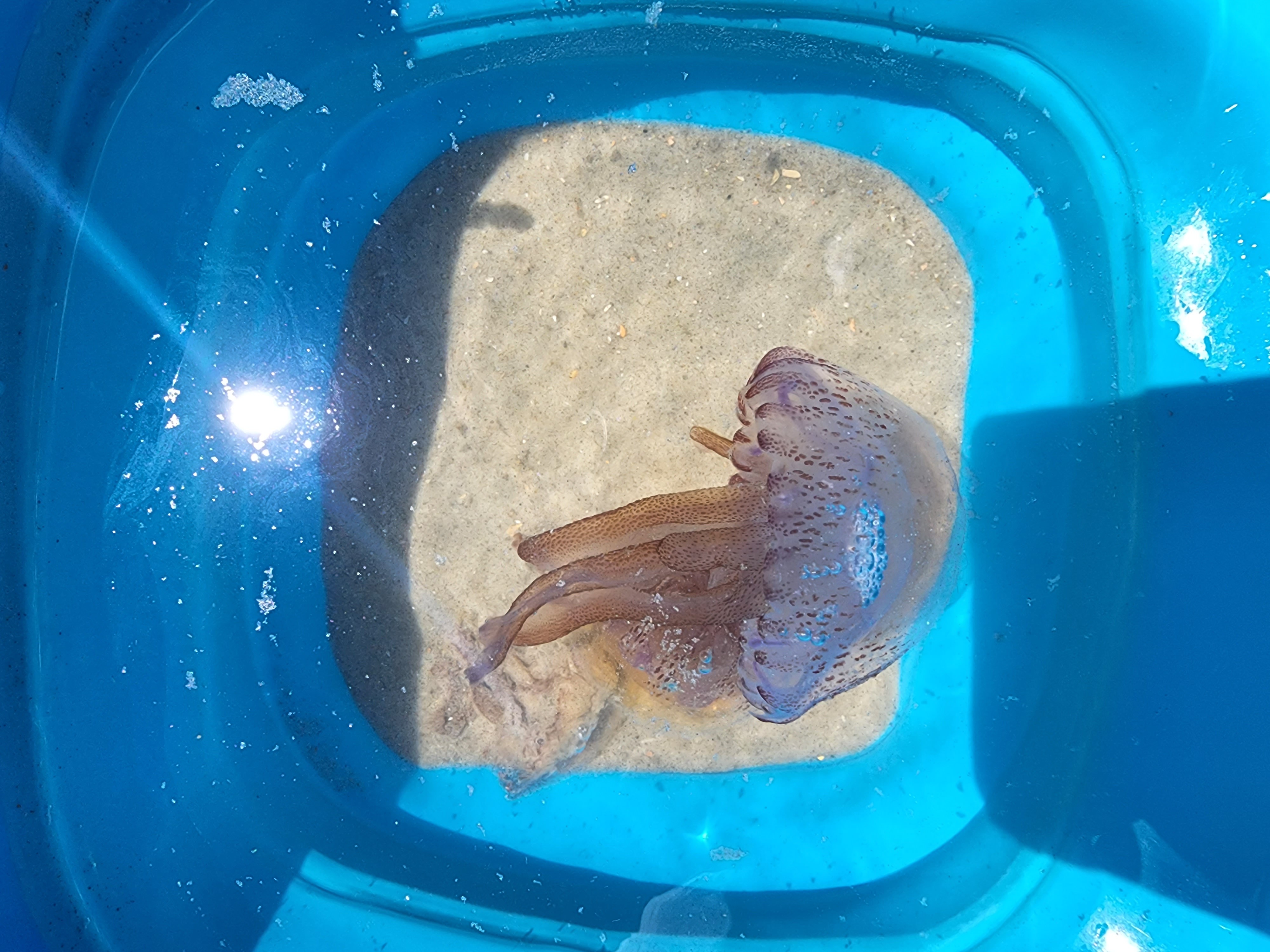 Upwards of 100 sighted and more moving northward in the current. Identified in seek