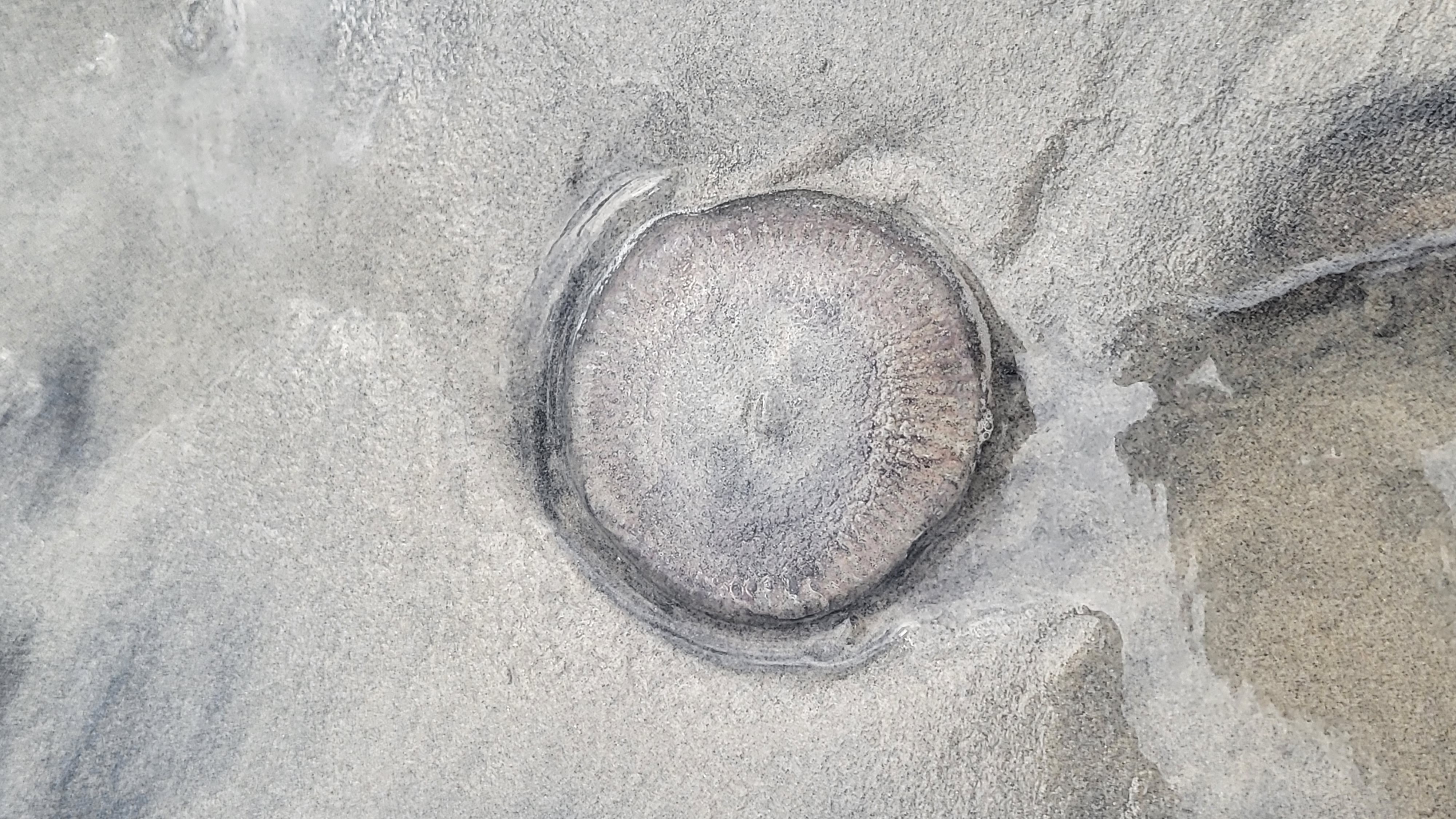 Dozens of jellyfish washed ashore in wildwood new jersey at the beach directly between East Hildreth and East Cressey streets, ~250 yards to the water. They appear to be moon jellyfish, but I'm not entirely sure.