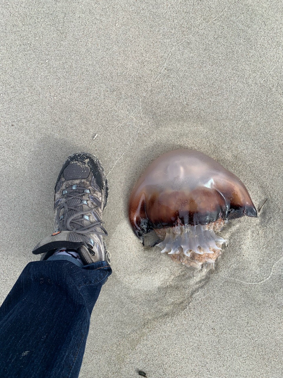 1 ft diameter) washed up along West Beach of Bald Head Island, NC, USA. Mouth of the Cape Fear River.
