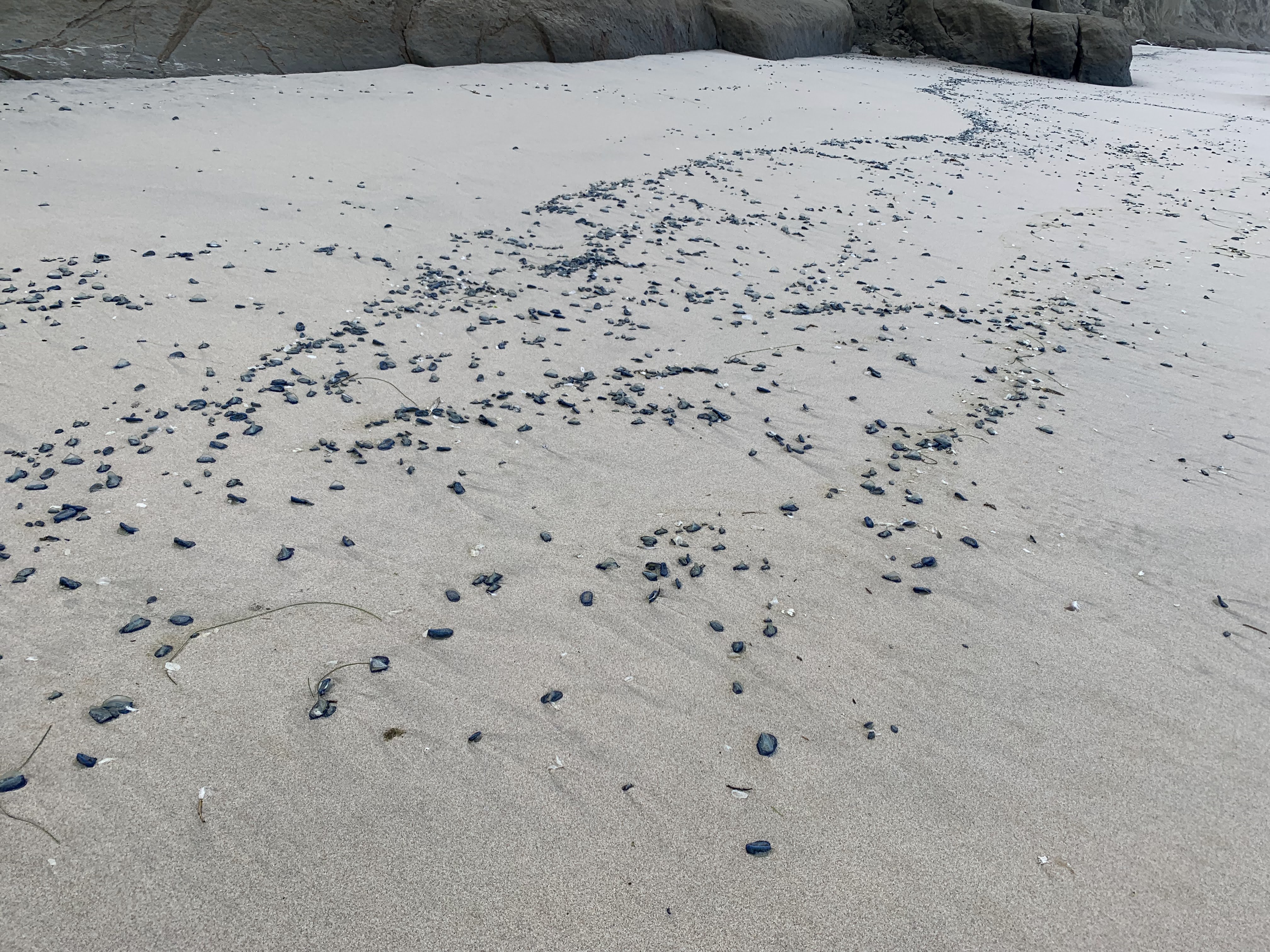Mass wash-up of By-the-wind sailors, Pomponio State Beach, CA