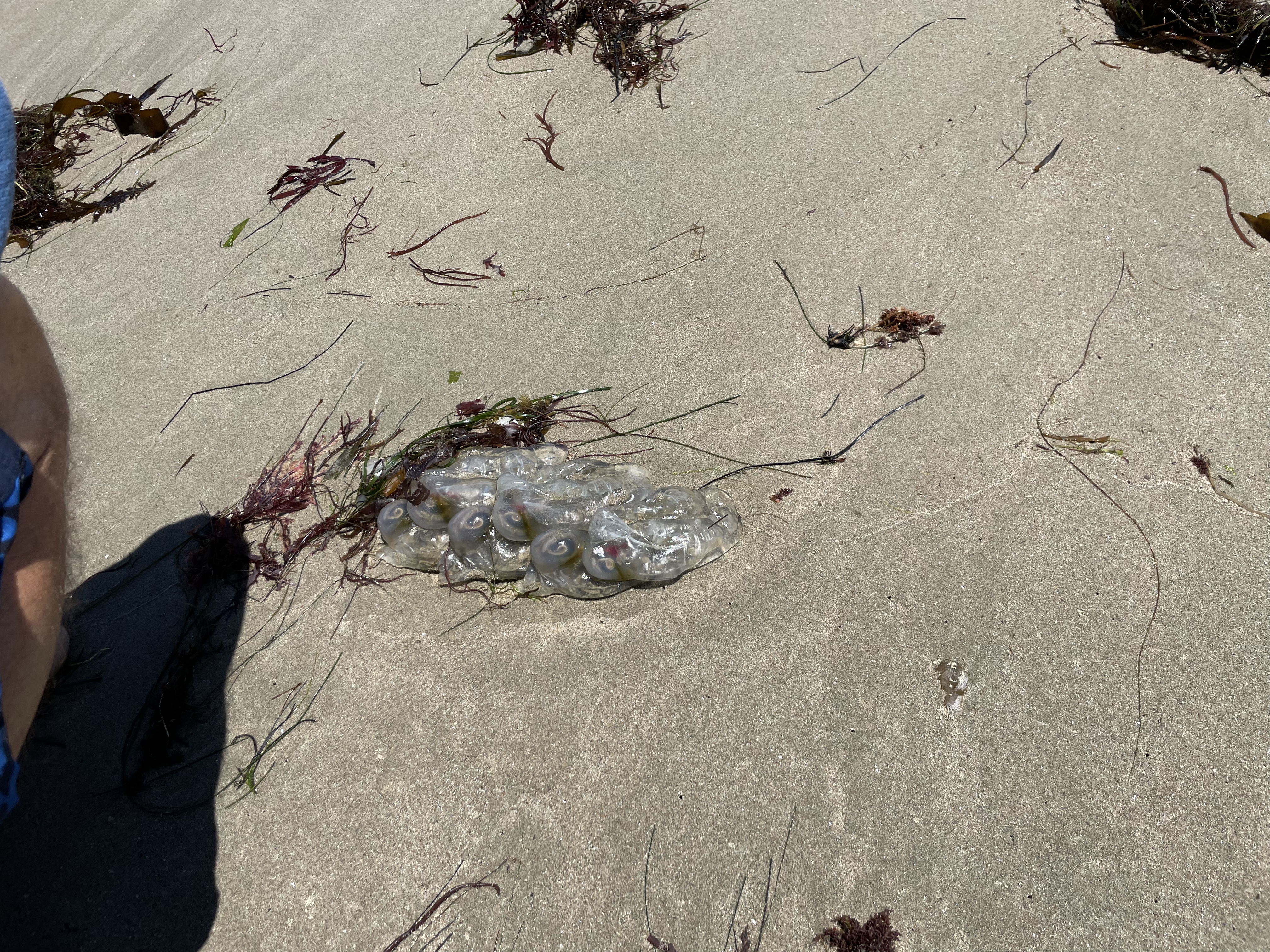 These were seen on the shore of the beach. One appeared to have eggs of some kind…
