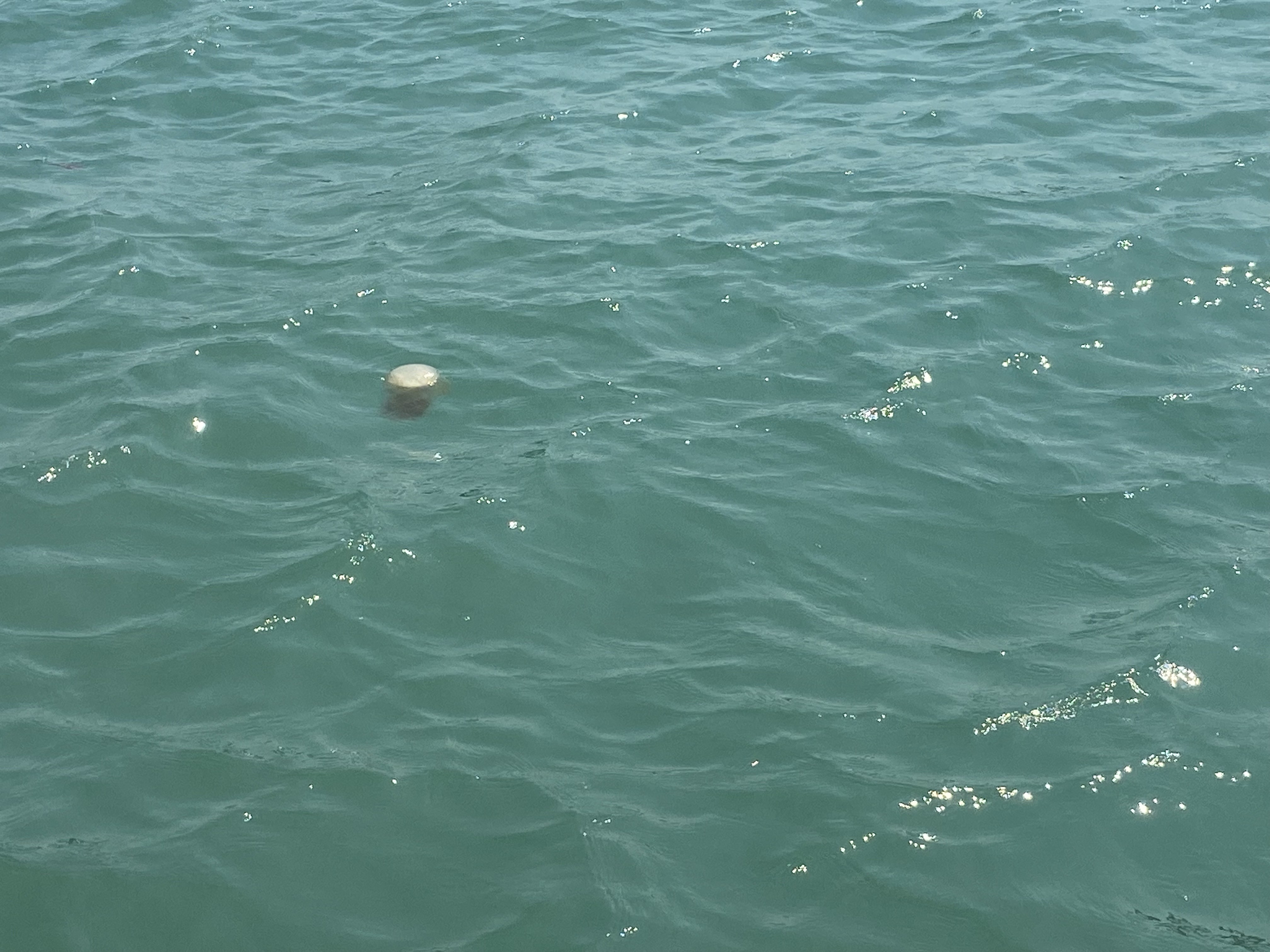 Beige head and brown tentacles. Was hard to get a close look, but I saw it when on a boat ride seeing the dolphins at Koh Samui port. It was probably as big as a grapefruit.