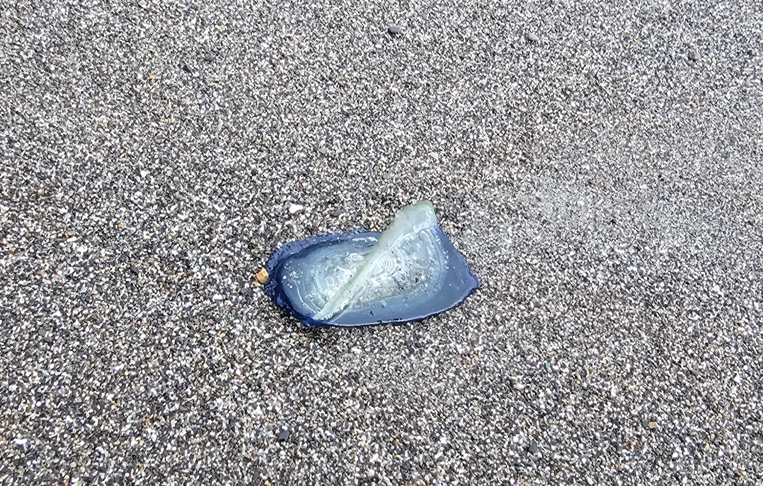 White sail with the blue bottom. A large amount had washed up on Stinson Beach.