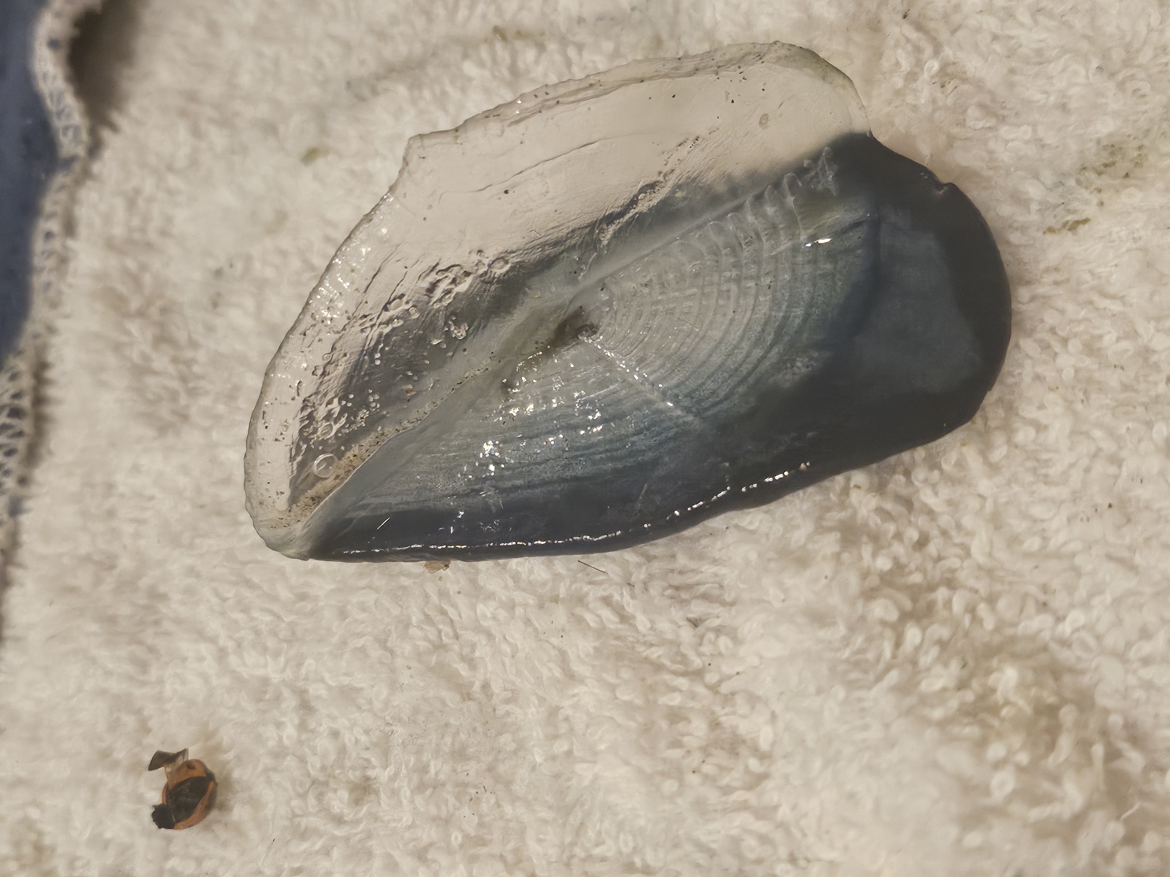 Walking on beach at Imperial beach we found about 60 Valella. They were on Sand and attached to seaweed. Some were completely transparent and most had blue and good condition body.