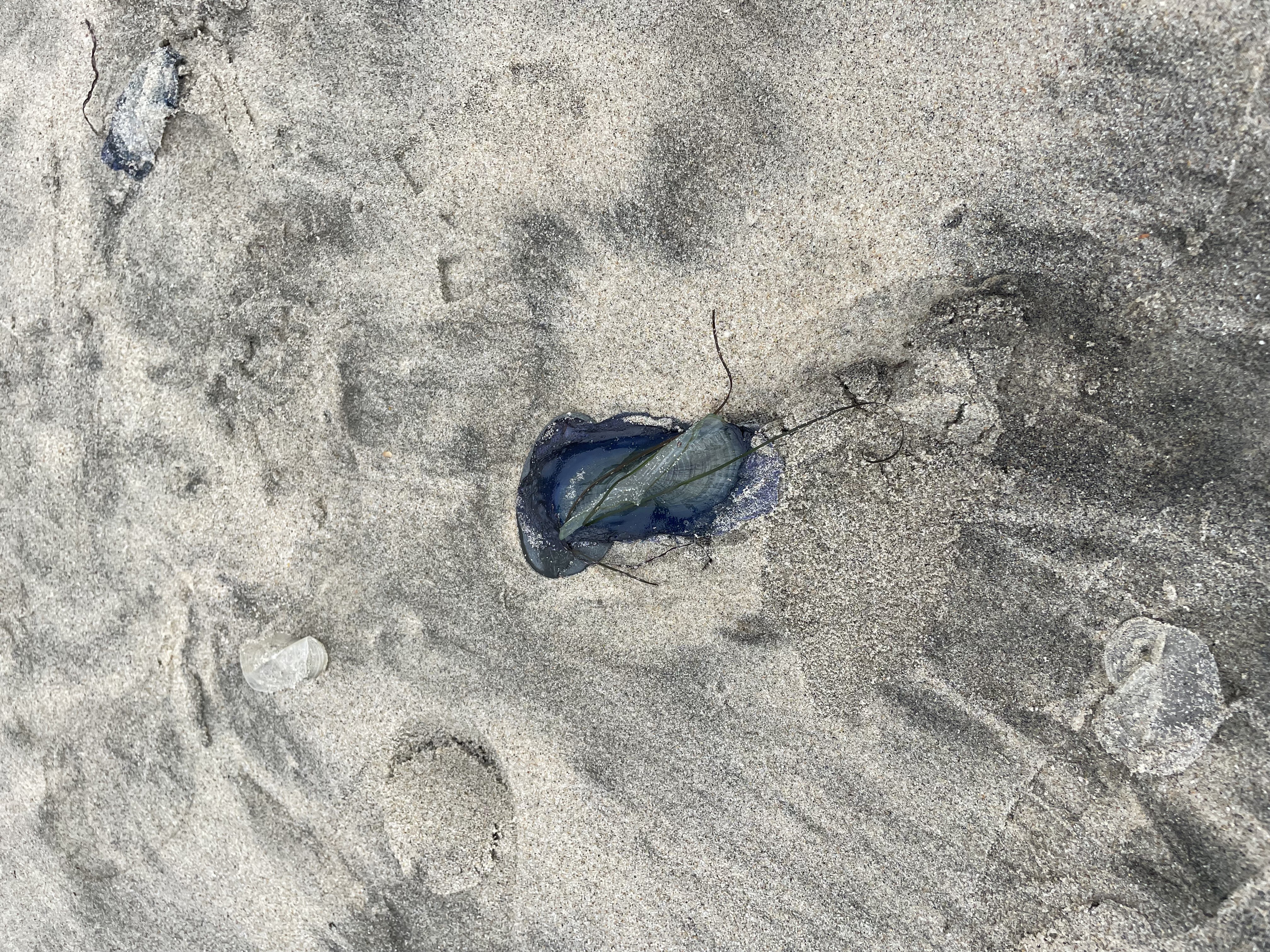 Left hand vellela washed up on the beach, 3 inches long each and several hundred to one thousand in number.