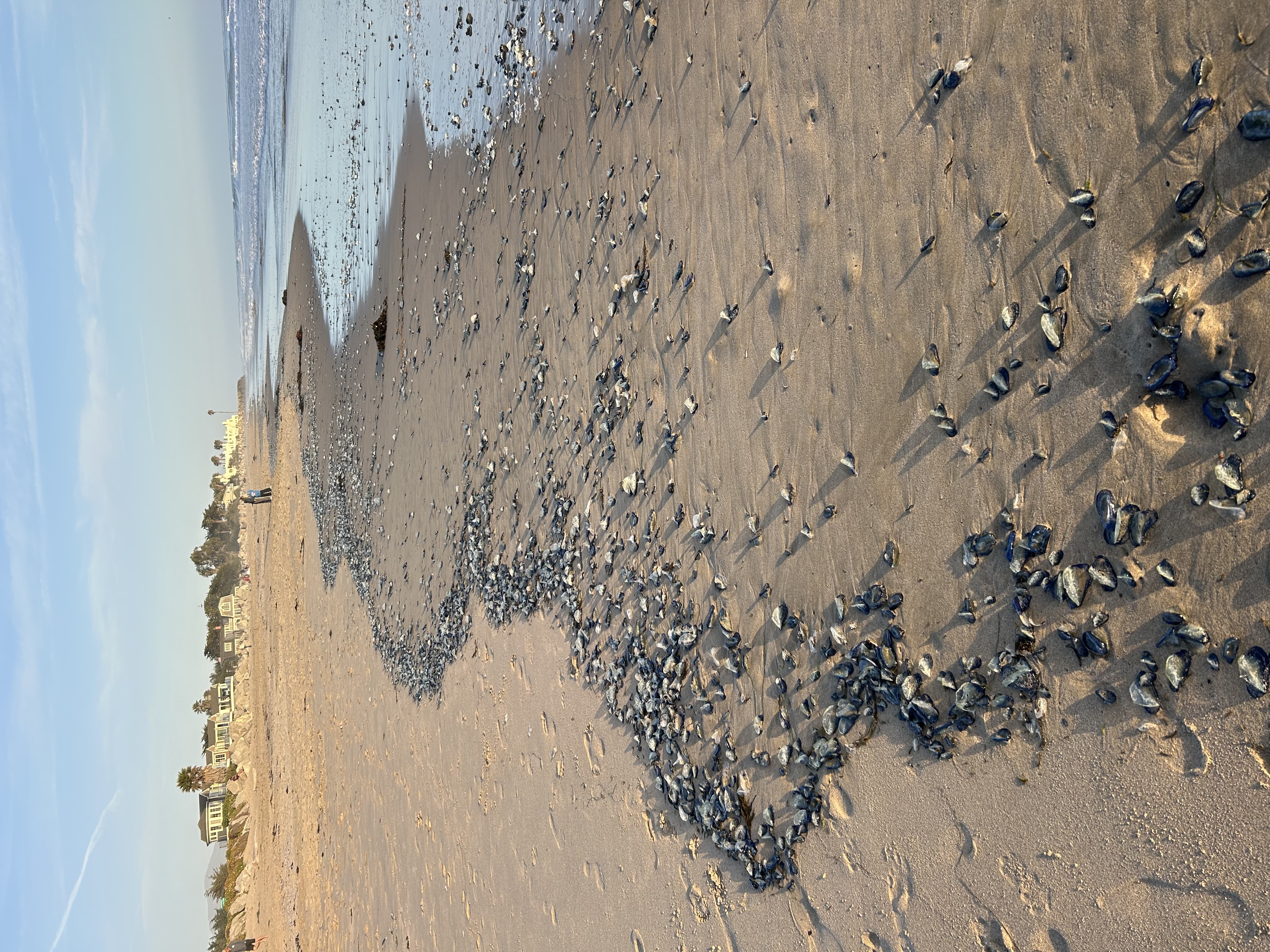 Walking on the beach, saw hundreds of thousands of velella washed up.