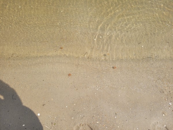 37.240 / -76.510 | Hundreds of small to medium red and orange jellyfish |