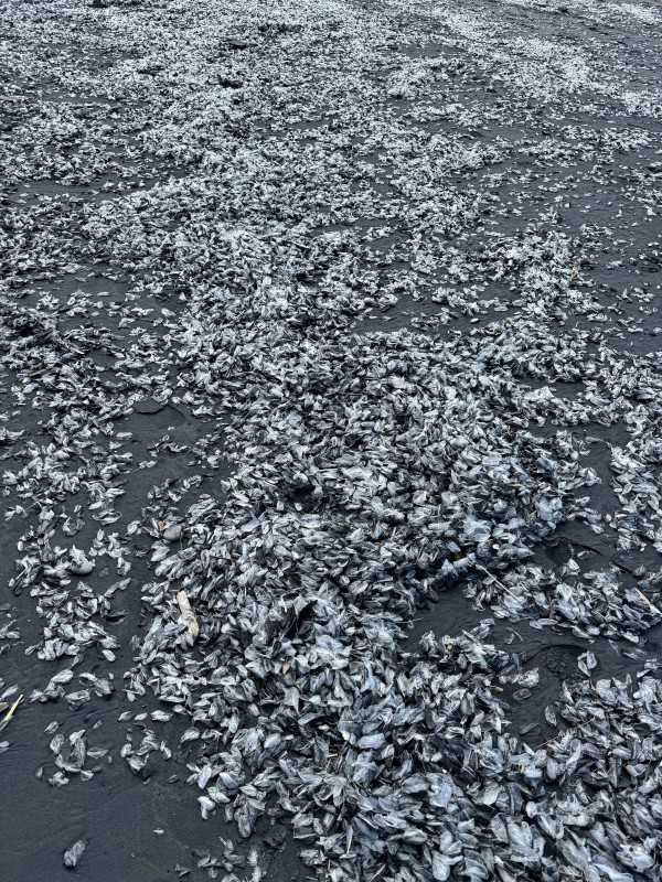 45.890 / -123.960 | Large number washed up on the shore near Cannon Beach OR |