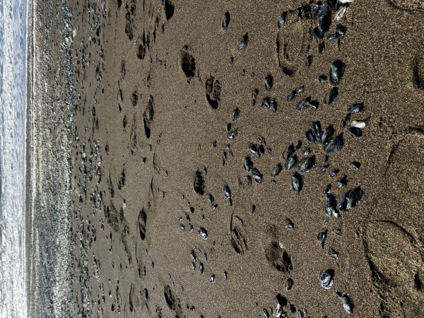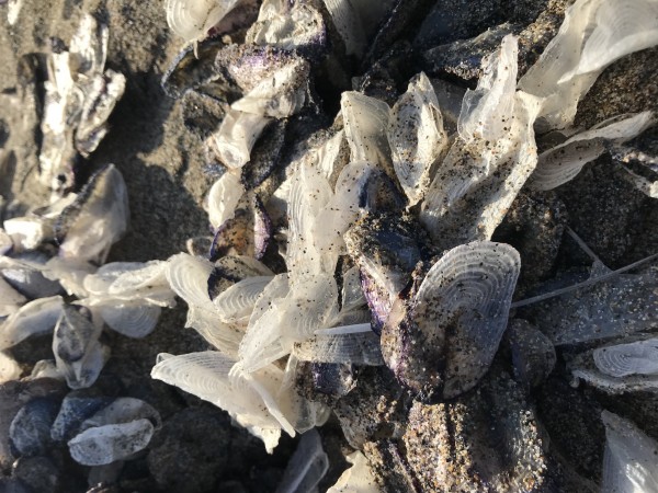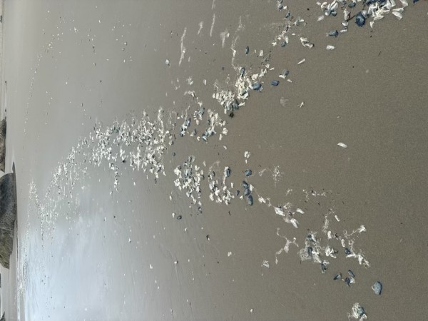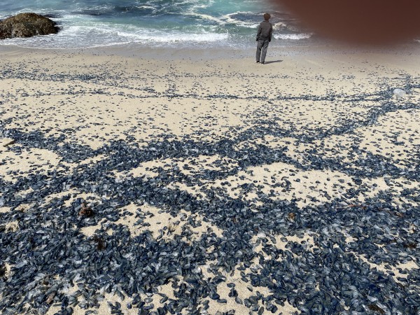 37.320 / -122.400 | By-the-wind sailors washed up on San Gregorio beach. |